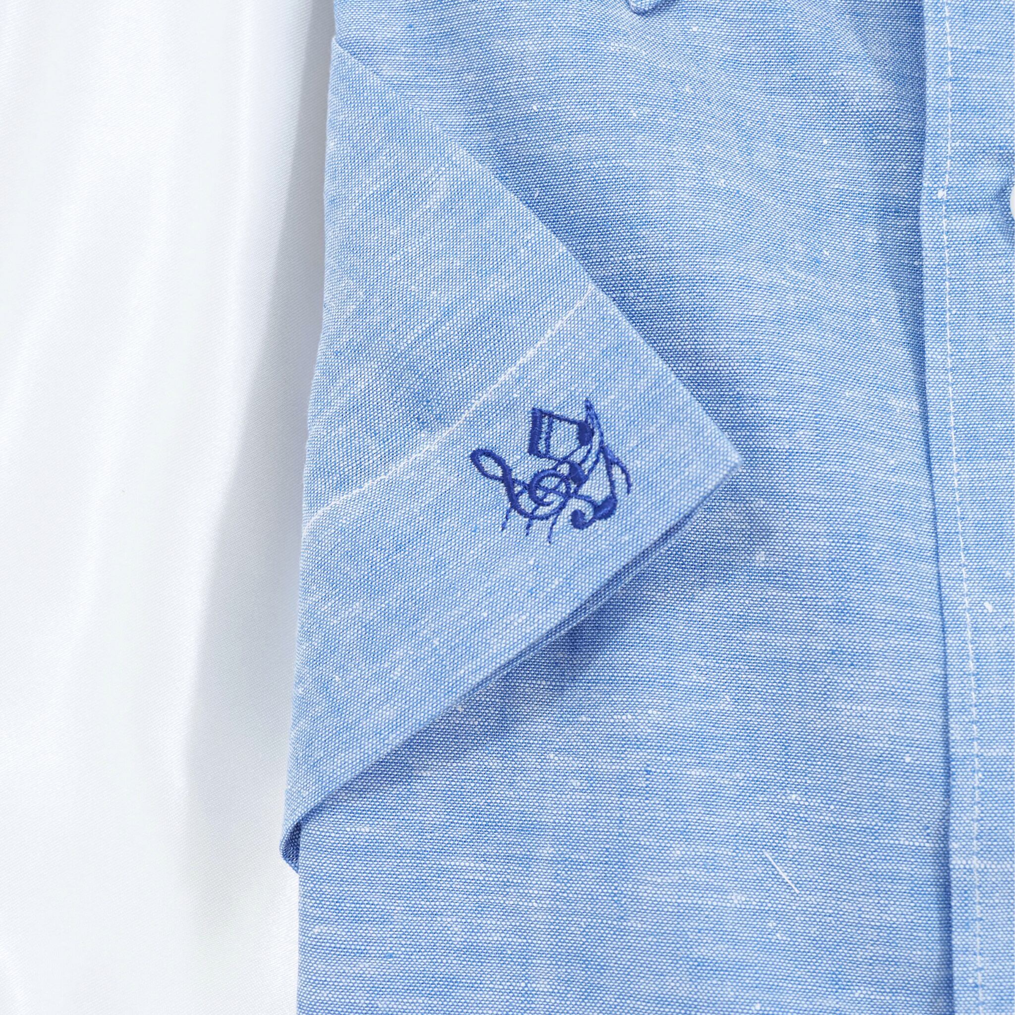 左袖には音符の刺繍入りで、遊び心もさりげなく演出。