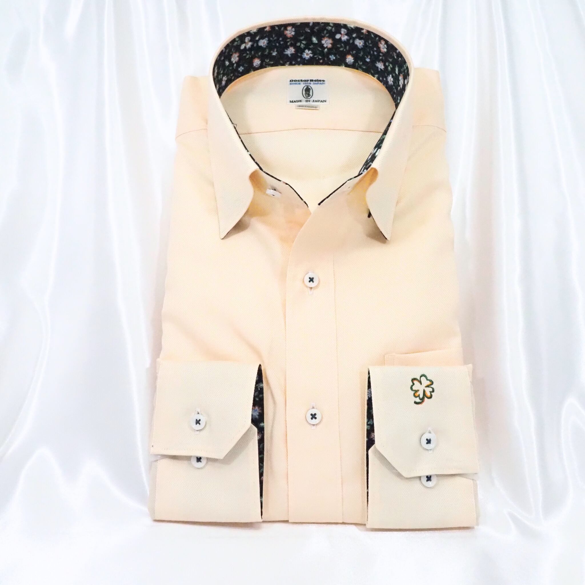 左袖の四つ葉刺繍と衿裏の花柄が、個性と幸運をそっと添えます。