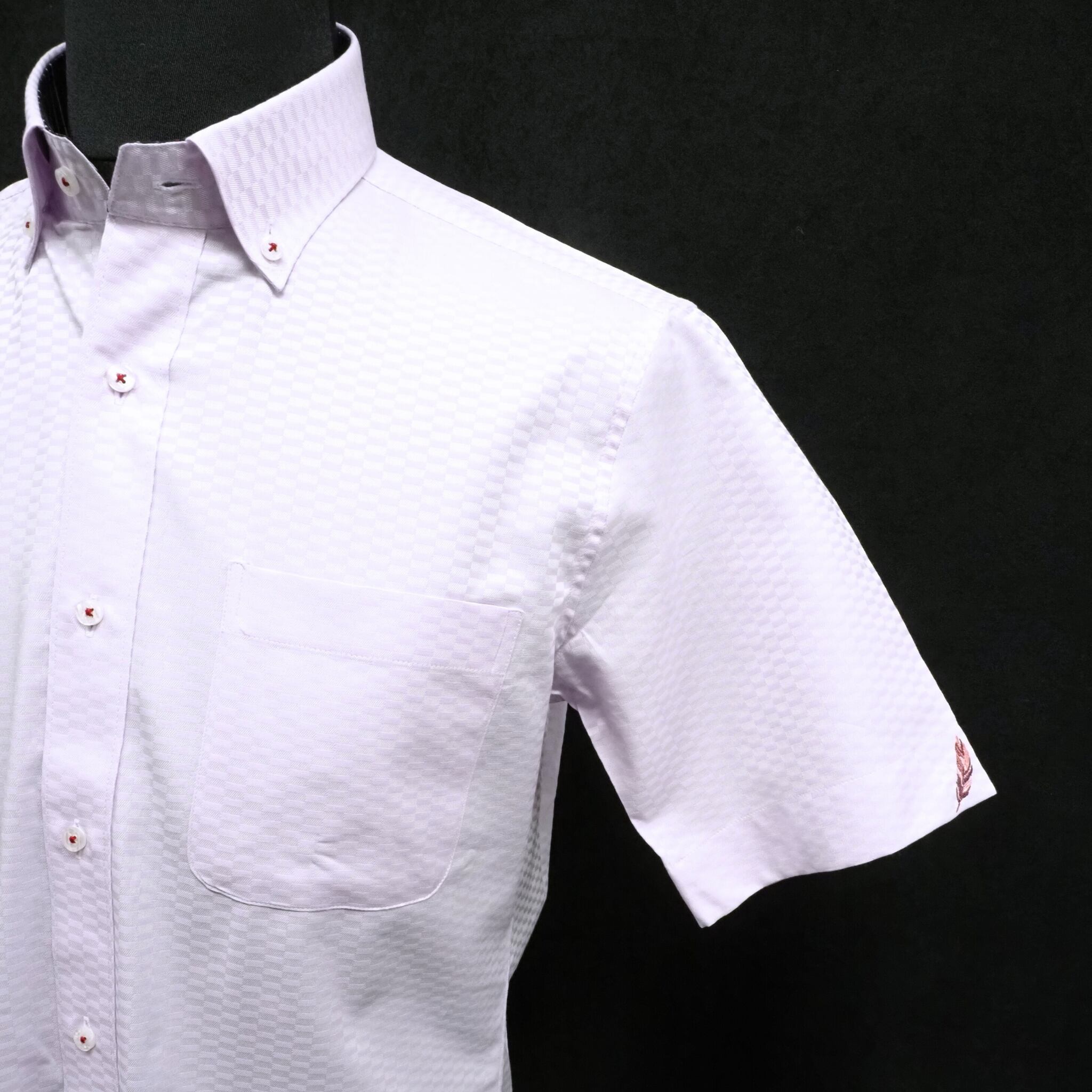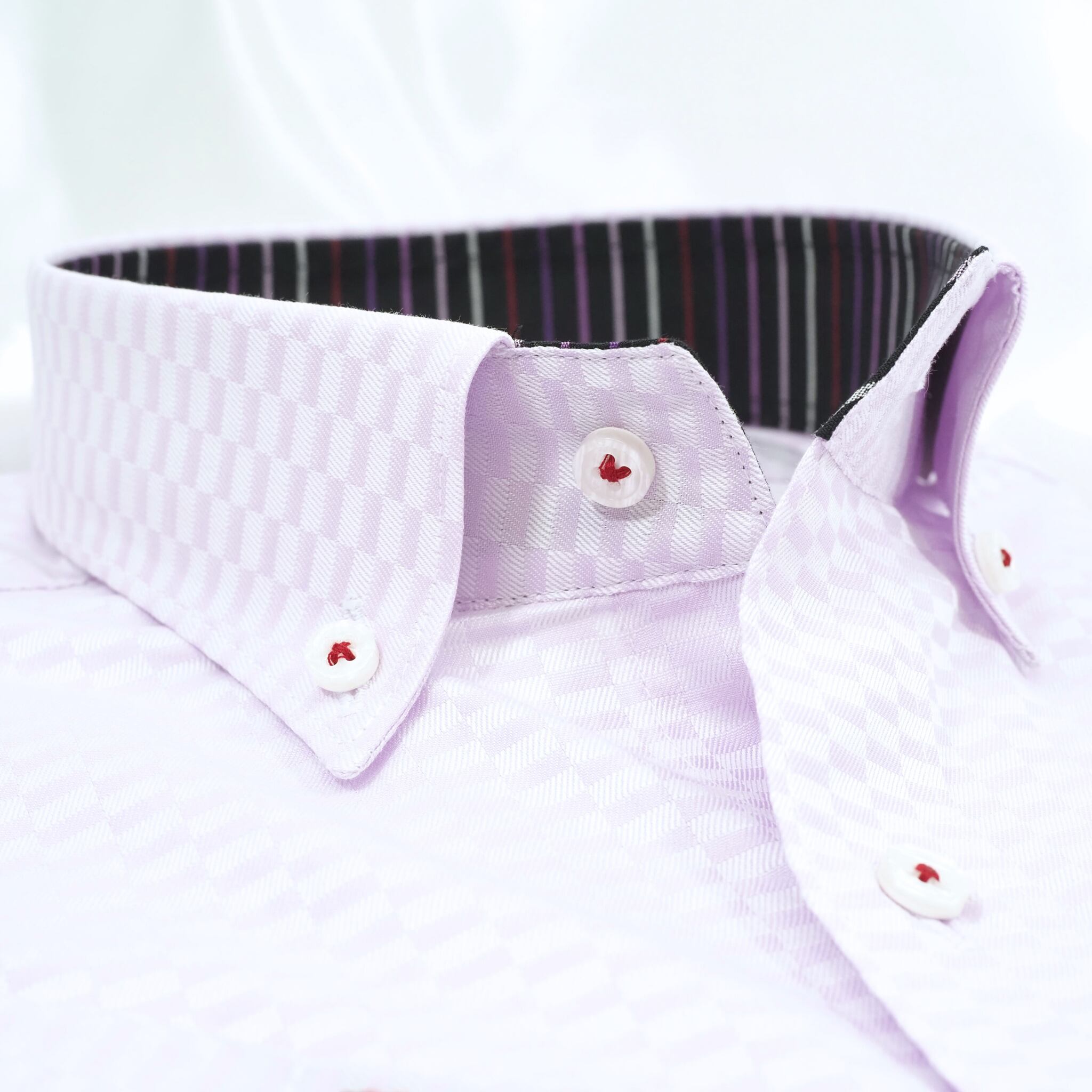 ショートボタンダウン衿とストライプの衿裏で、さりげない個性を。