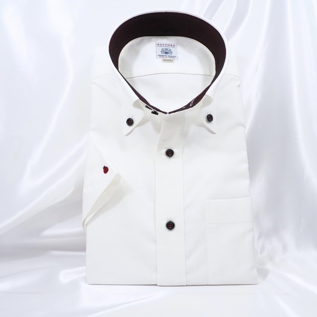 爽やかな白地に、袖口の“イカリ刺繍”が映える一着。