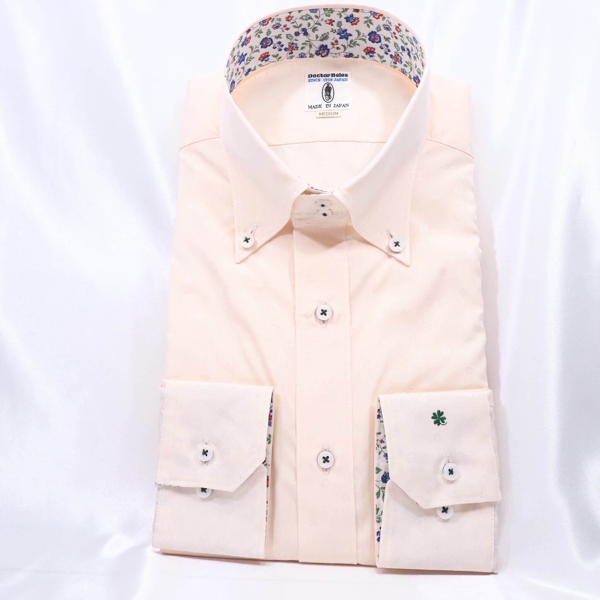 袖口には、幸運の象徴である「クローバー」のワンポイント刺繍を添えて。