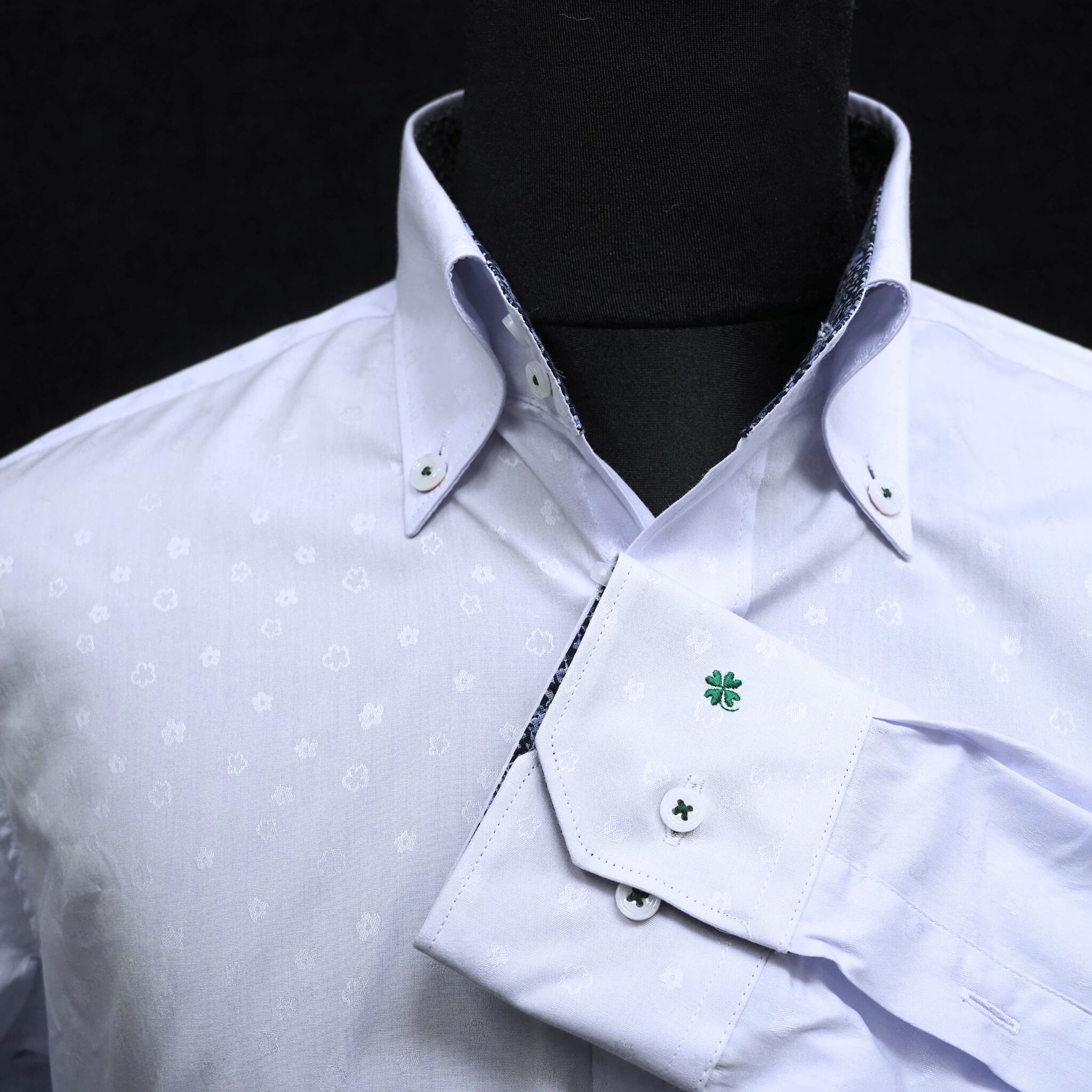 袖口には幸運の象徴「クローバー」の刺繍入りで、さりげない遊び心も魅力。