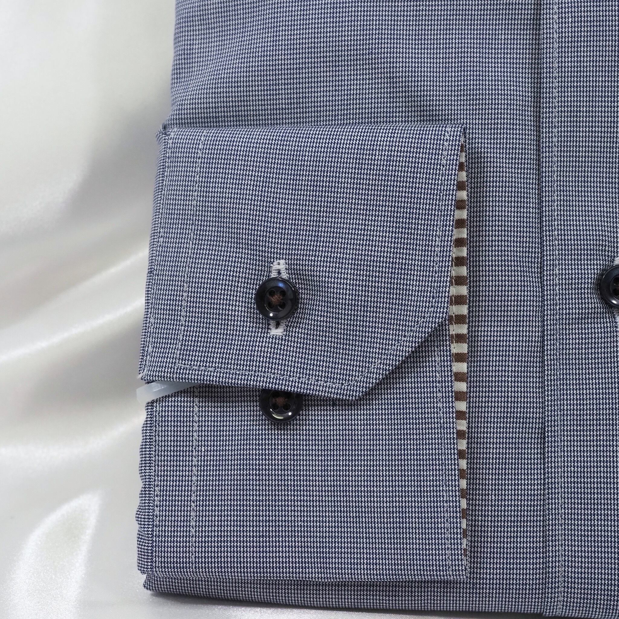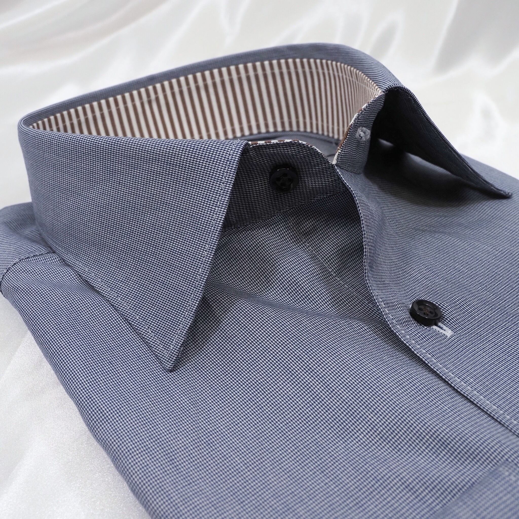落ち着いたネイビーベースに、ブラウンの裏地が程よくカジュアル感をプラス。
