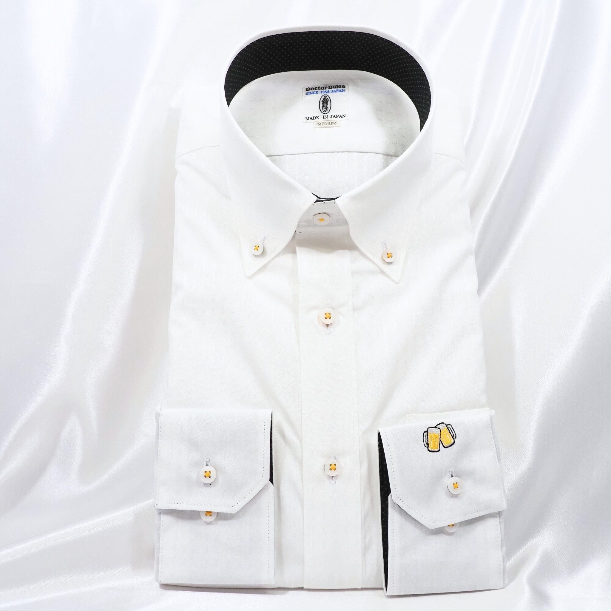 一見まじめな白シャツに、ポップな「ビール」刺繍をプラス。