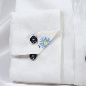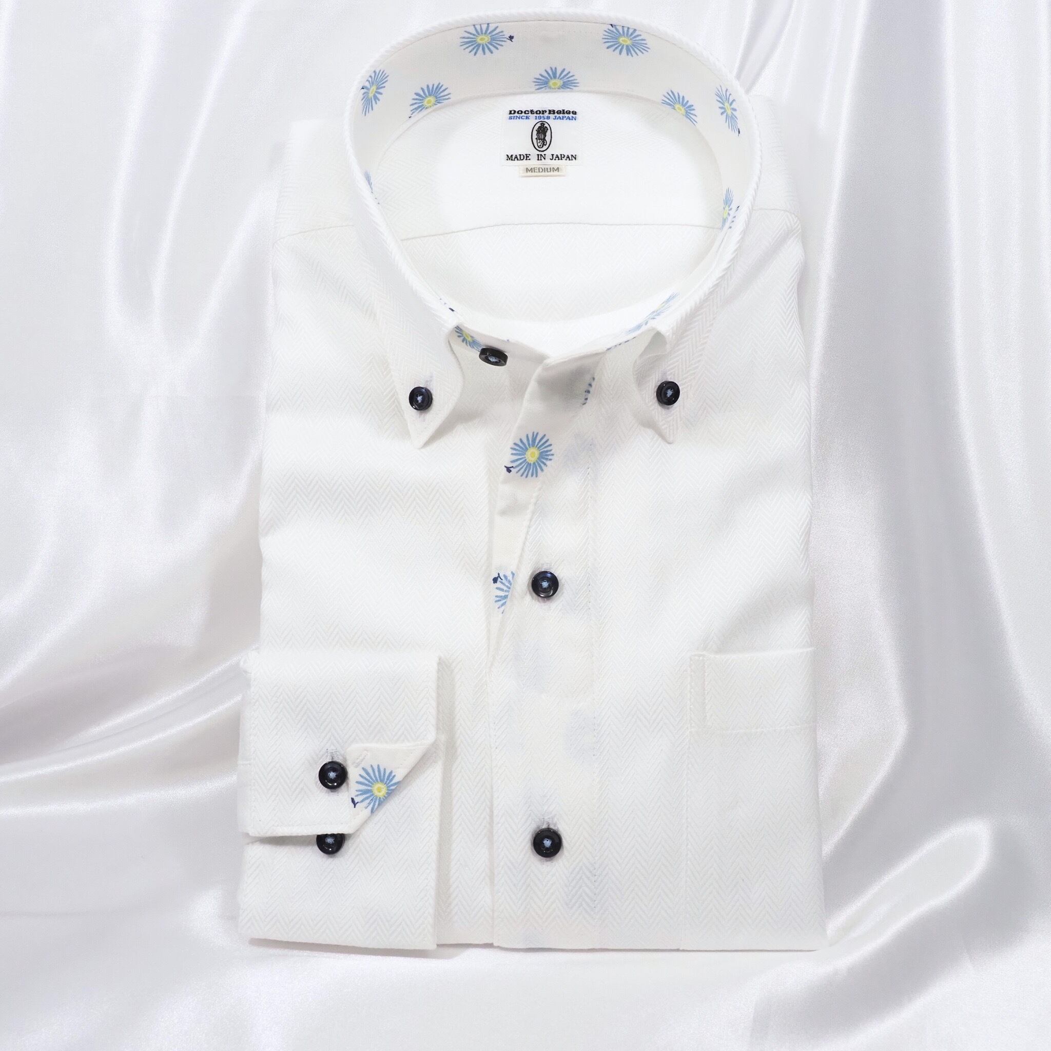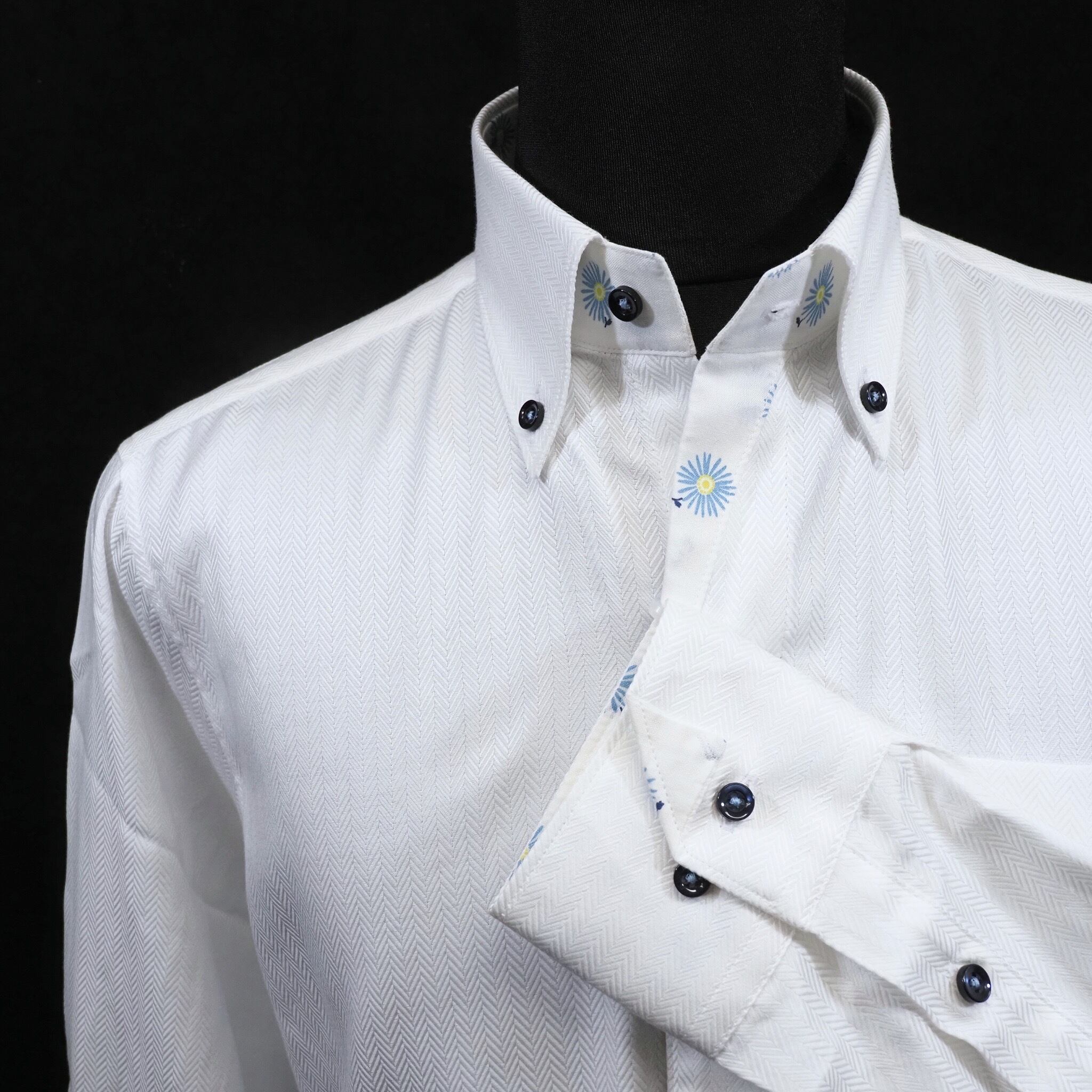 織柄のヘリンボーン地に、花柄の裏地がさりげなくのぞく可憐なデザイン。