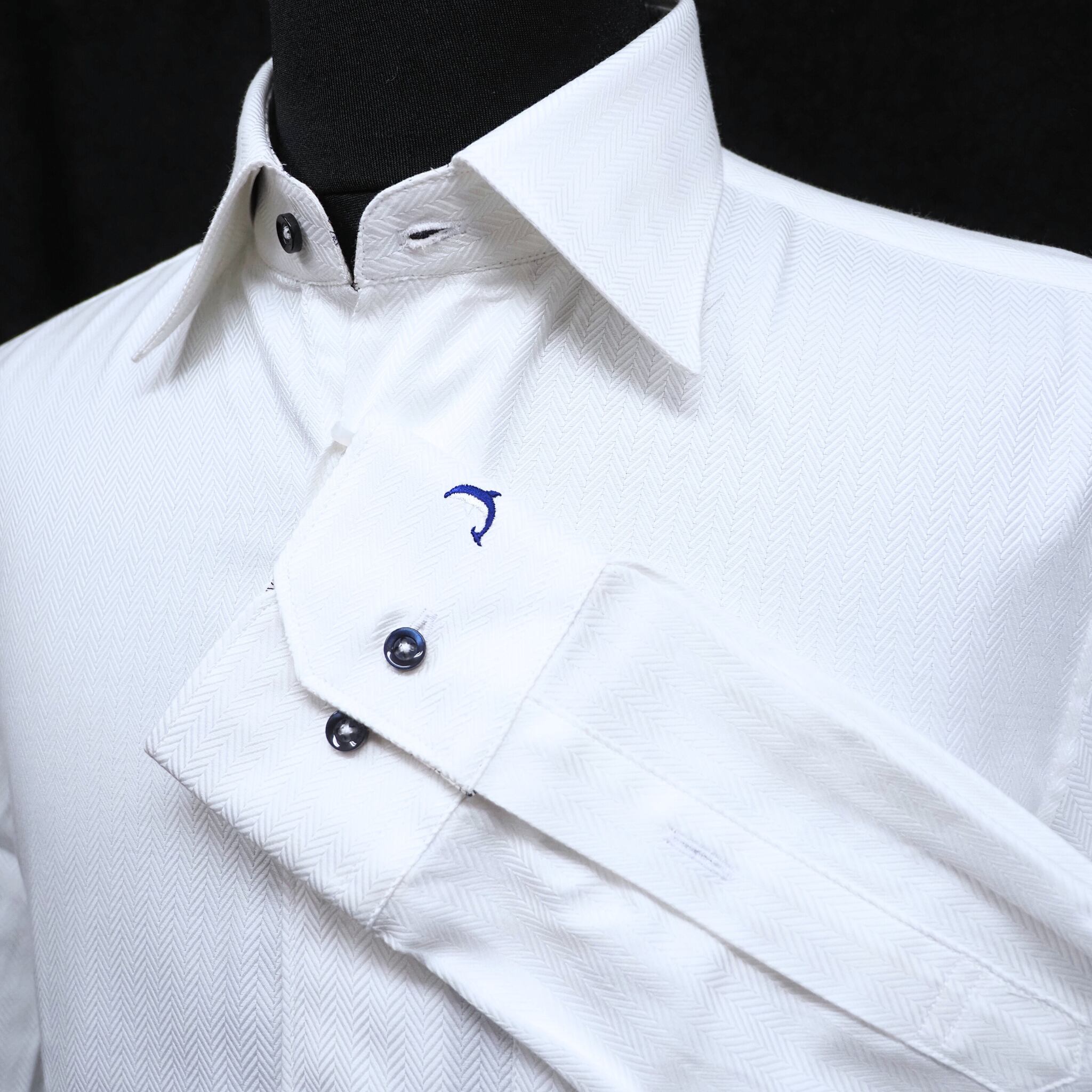 清潔感と個性を兼ね備えた上品な一着です。