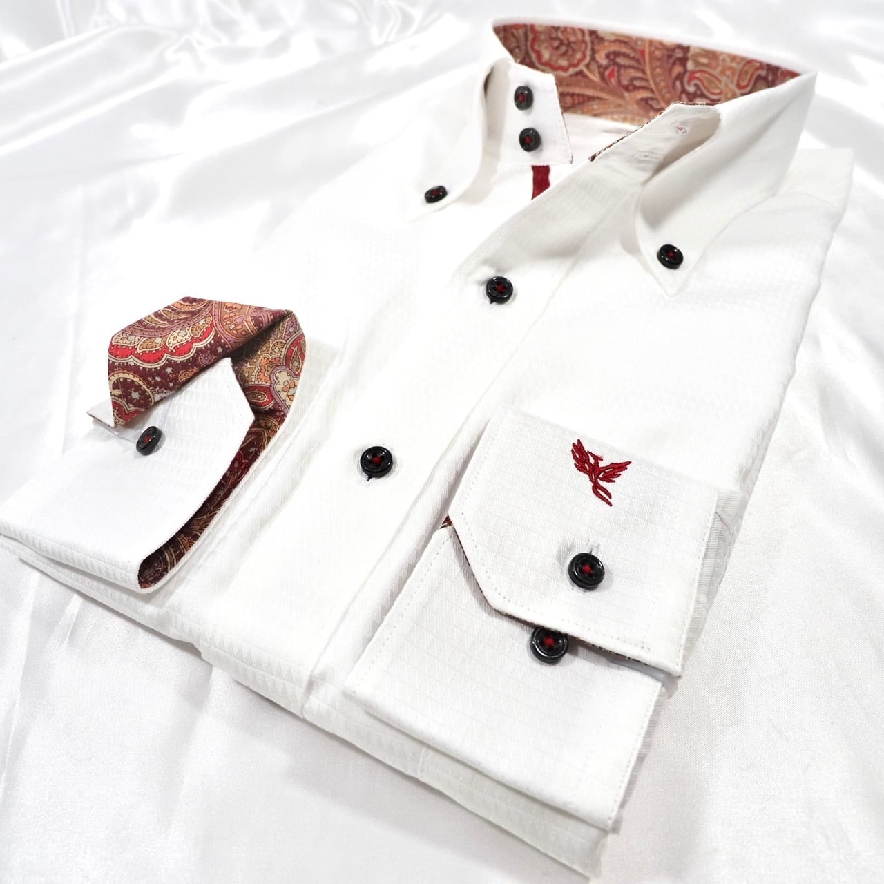裏地も「フェニックス」が引き立つ赤いペイズリー柄。