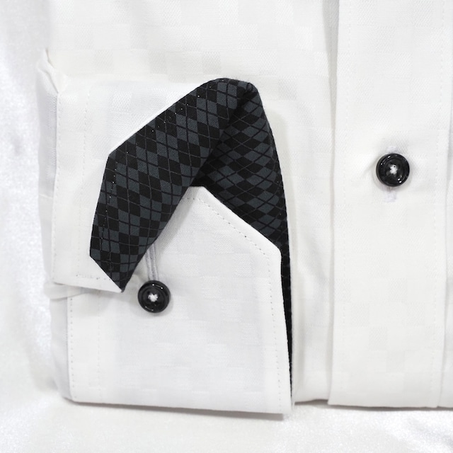 ビジネスファッションの遊び心を大切にしているドクターベリーのワイシャツの袖口にジャック・スケリントンデザインの刺繍がワンポイント♪