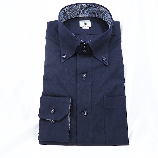 深みのあるネイビーベースに、ボタニカルの織柄でさりげない表情をプラス。