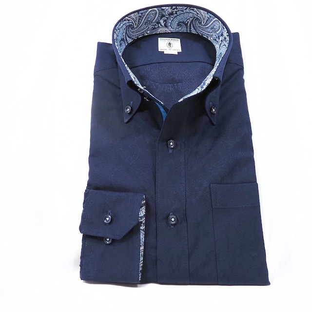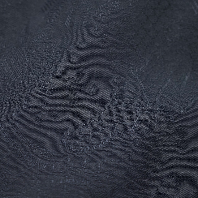 深みのあるネイビーベースに、ボタニカルの織柄でさりげない表情をプラス。