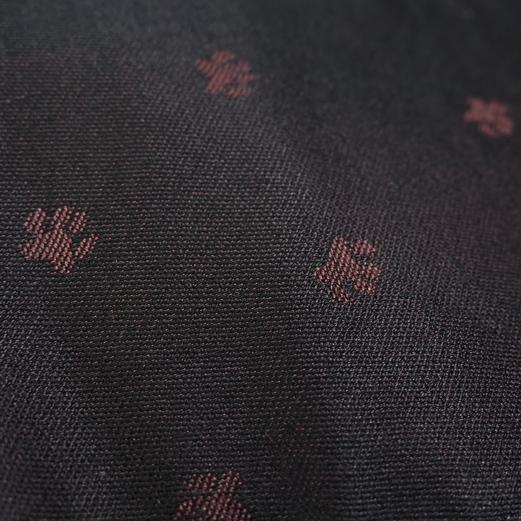 袖をめくると現れるのは、エンジ色に肉球柄を織り込んだ遊び心満点の裏地。
