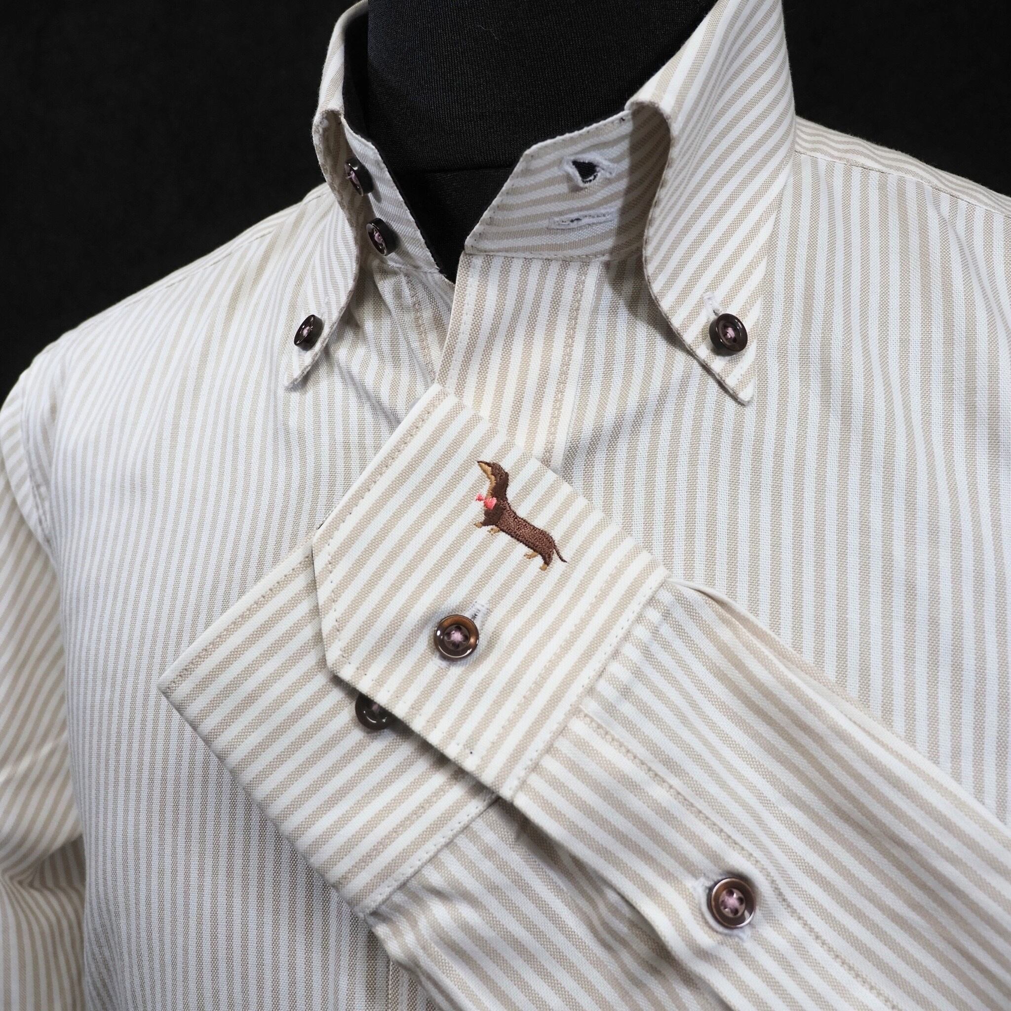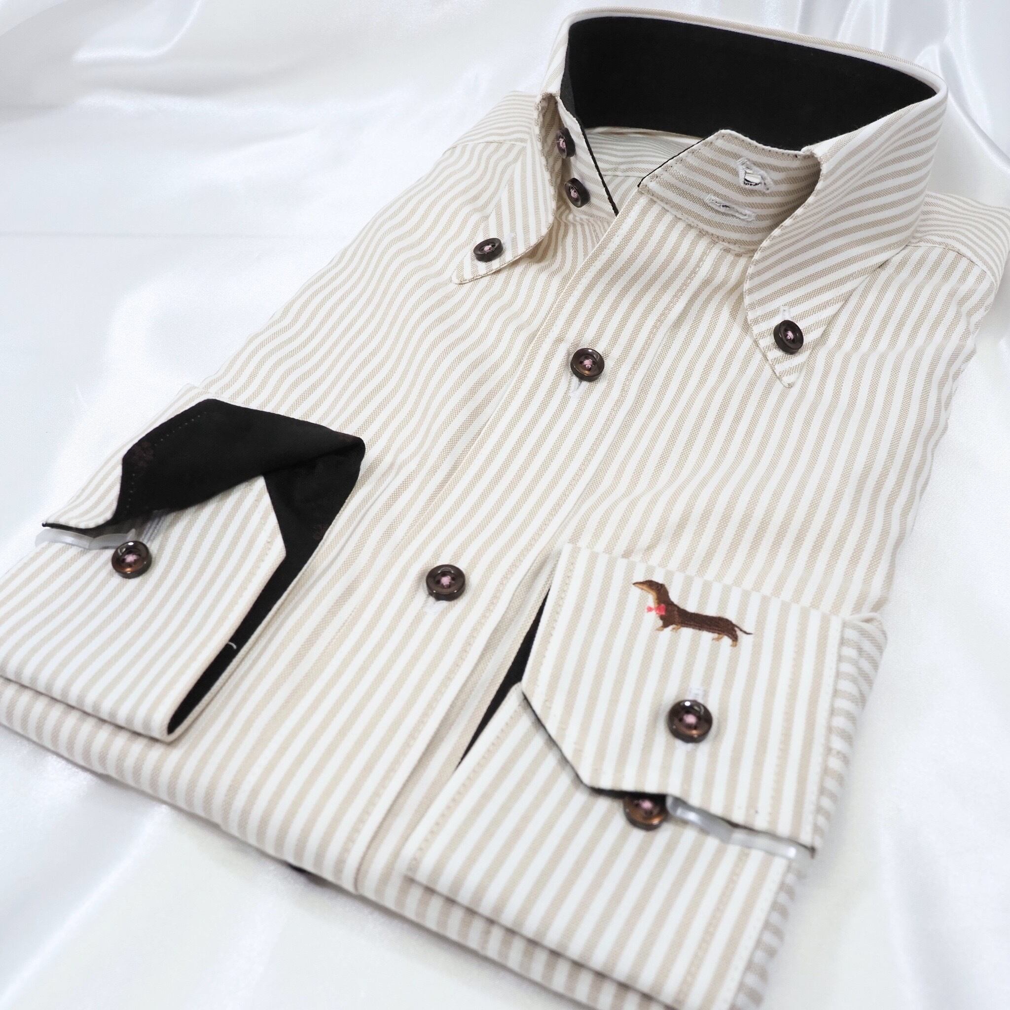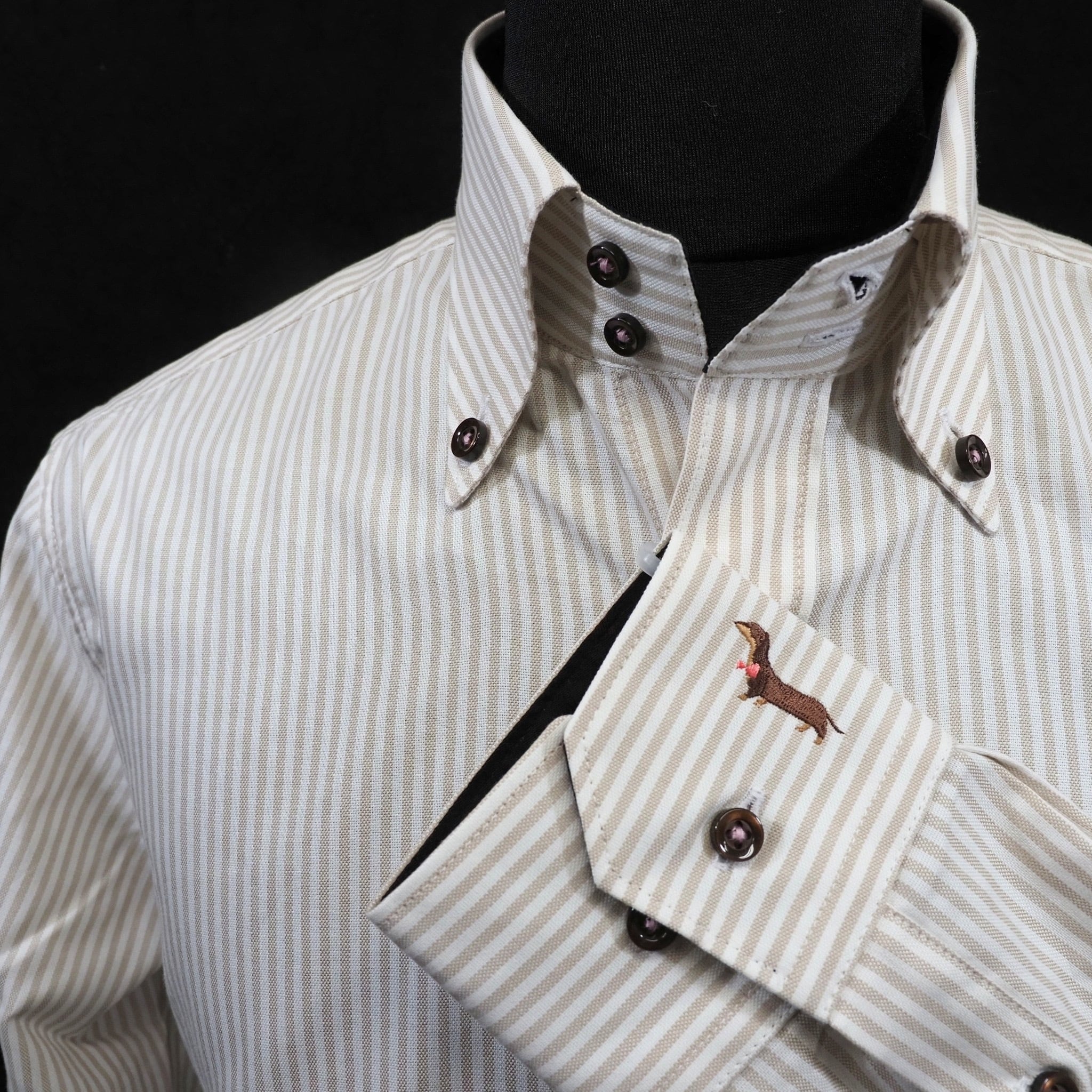 左袖の“蝶ネクタイを締めたダックスフンド刺繍”が、愛らしさを添えます。