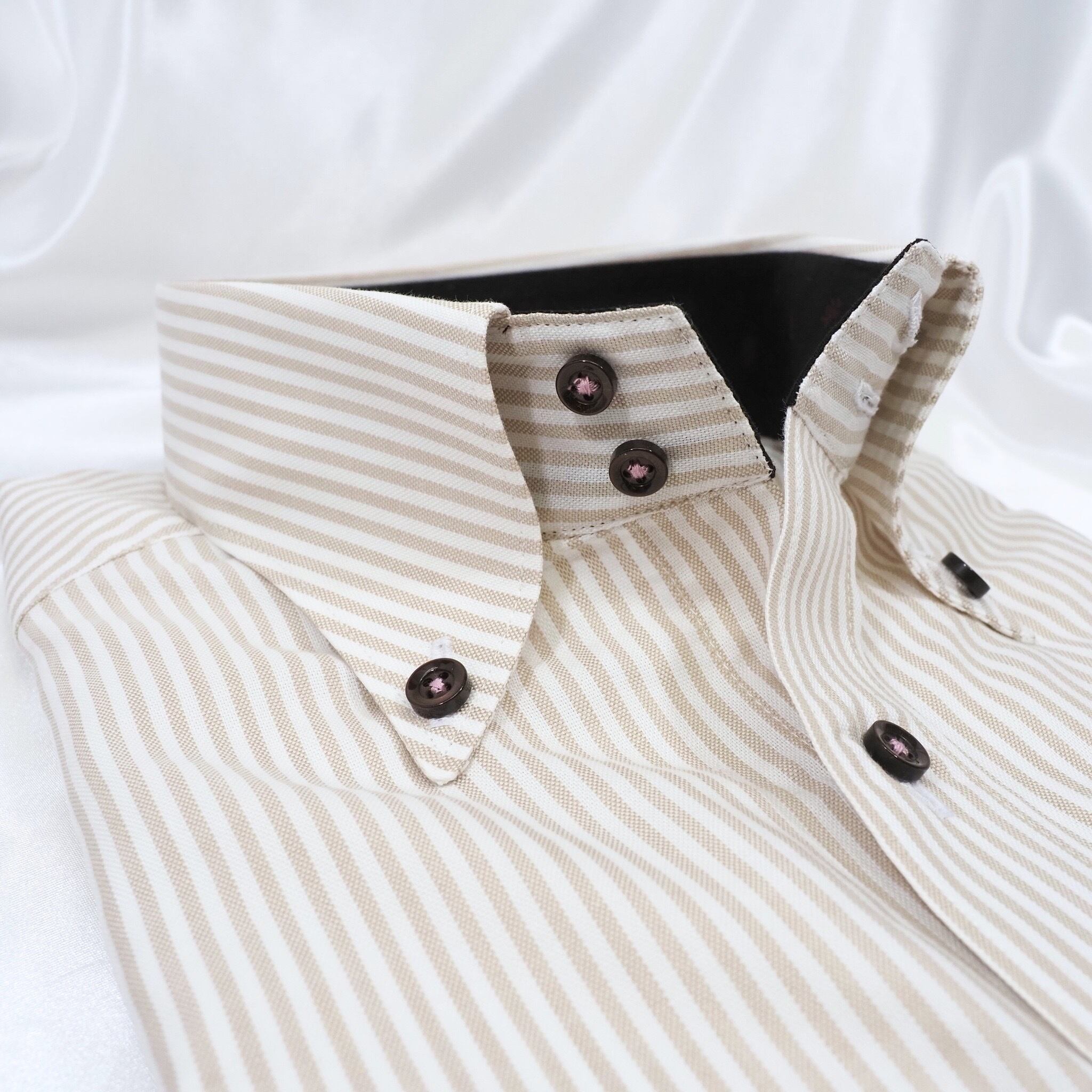 オシャレかつ爽やかな白ベースのベージュストライプ生地です。