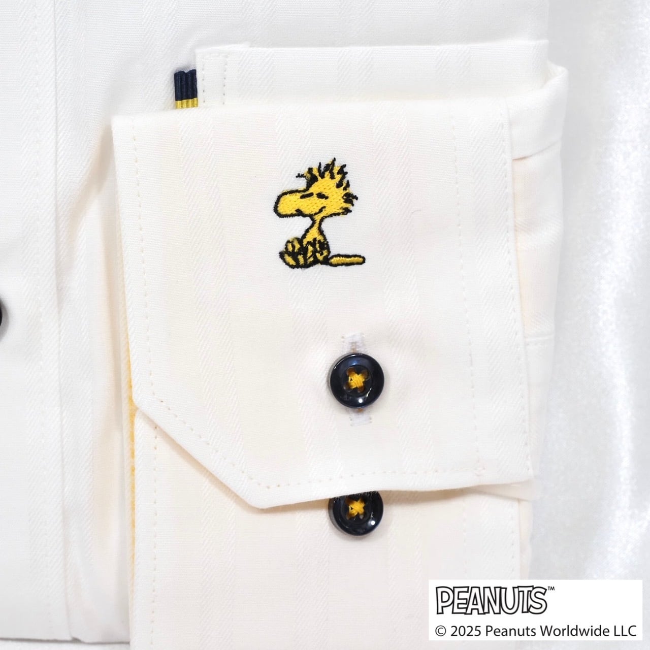ビジネスファッションの遊び心を大切にしているドクターベリーのワイシャツの袖口にスヌーピー刺繍やウッドストック刺繍がワンポイント♪