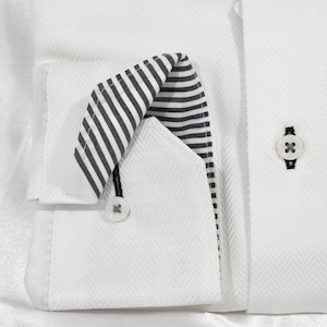 ビジネスファッションの遊び心を大切にしているドクターベリーのワイシャツの袖口にスヌーピー刺繍やウッドストック刺繍がワンポイント♪
