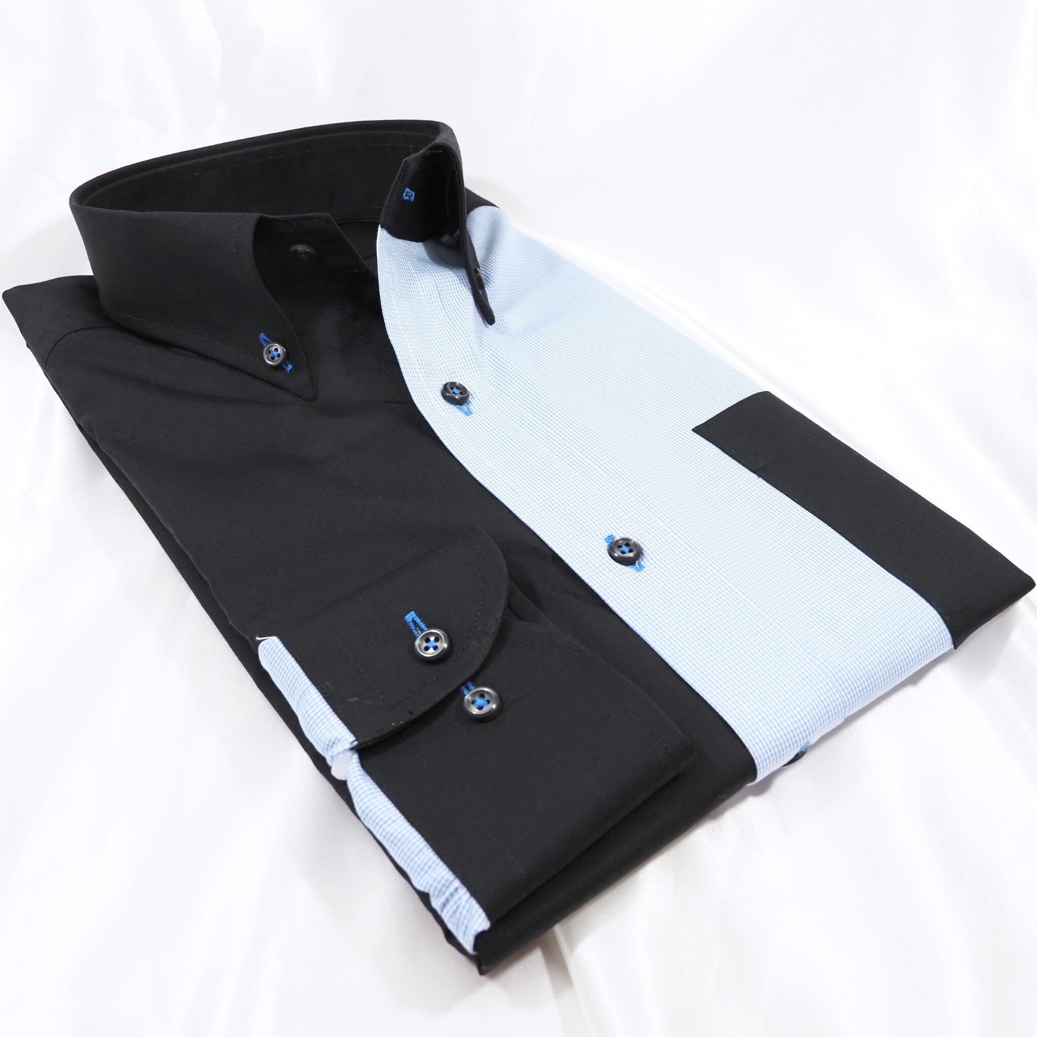 黒無地織/サックスギンガムチェック織