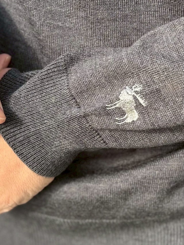 ニットの上品さを損なわない、控えめなワンポイントです。