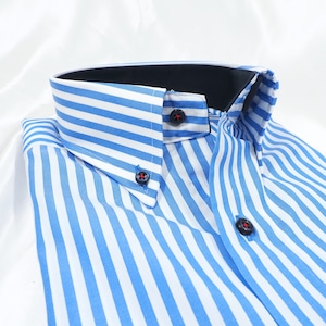 視線を惹きつける太めのブルーラインが特徴の存在感あるストライプ。