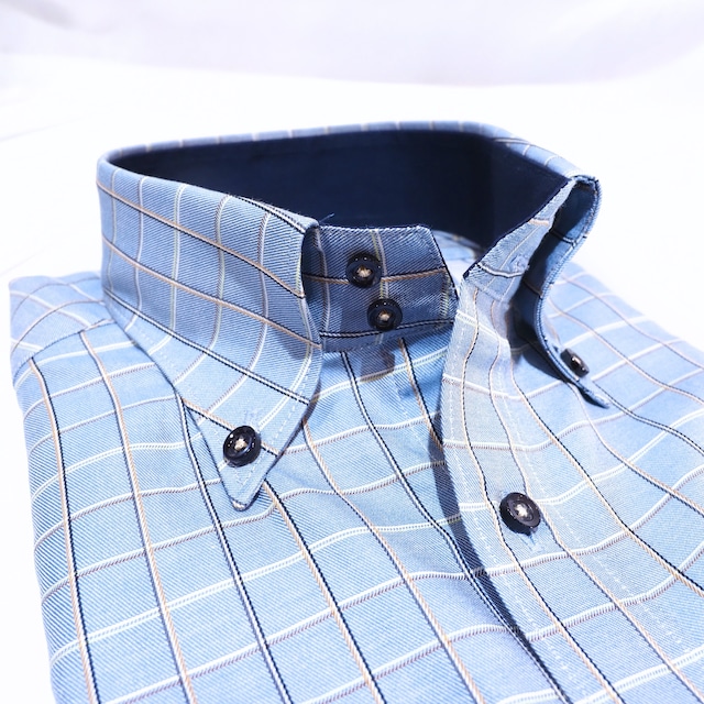 爽やかなサックス地に細いウィンドウペンを重ねた、清潔感あふれるデザイン。