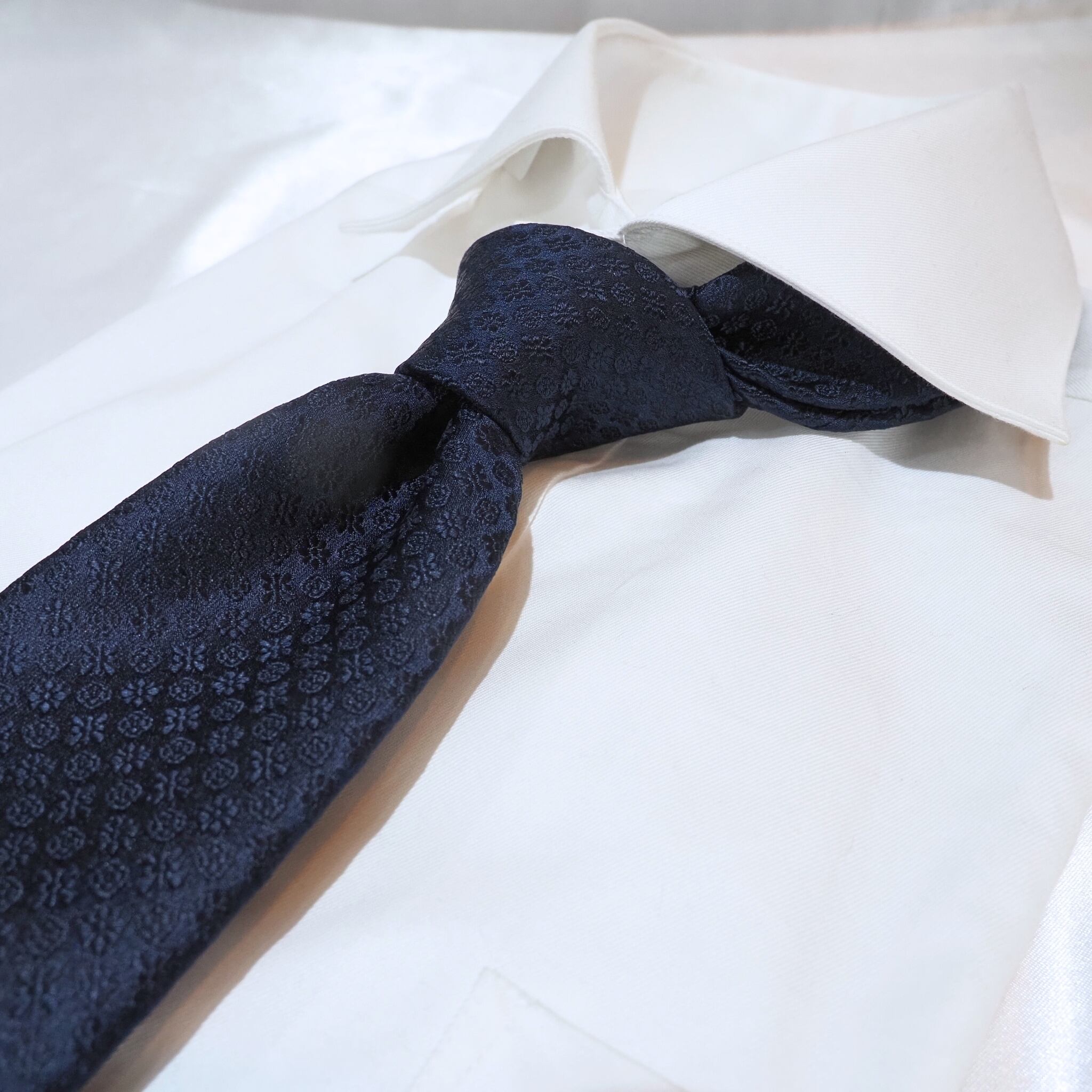 無地のネクタイを締めるとまたいつもと雰囲気がガラッと変わるのでおすすめです。