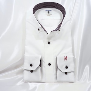 真っ白なシャツに、千鳥柄の裏地が映える一着。