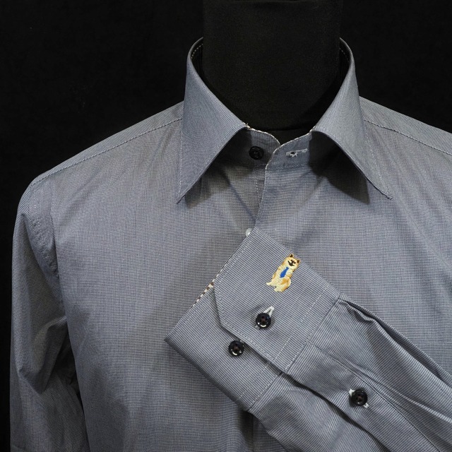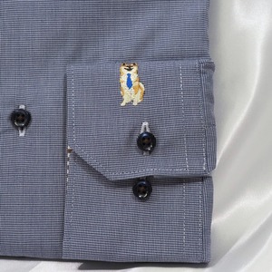 左袖には、ネクタイ姿の柴犬刺繍がちょこんと登場。