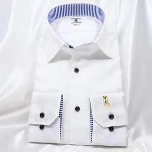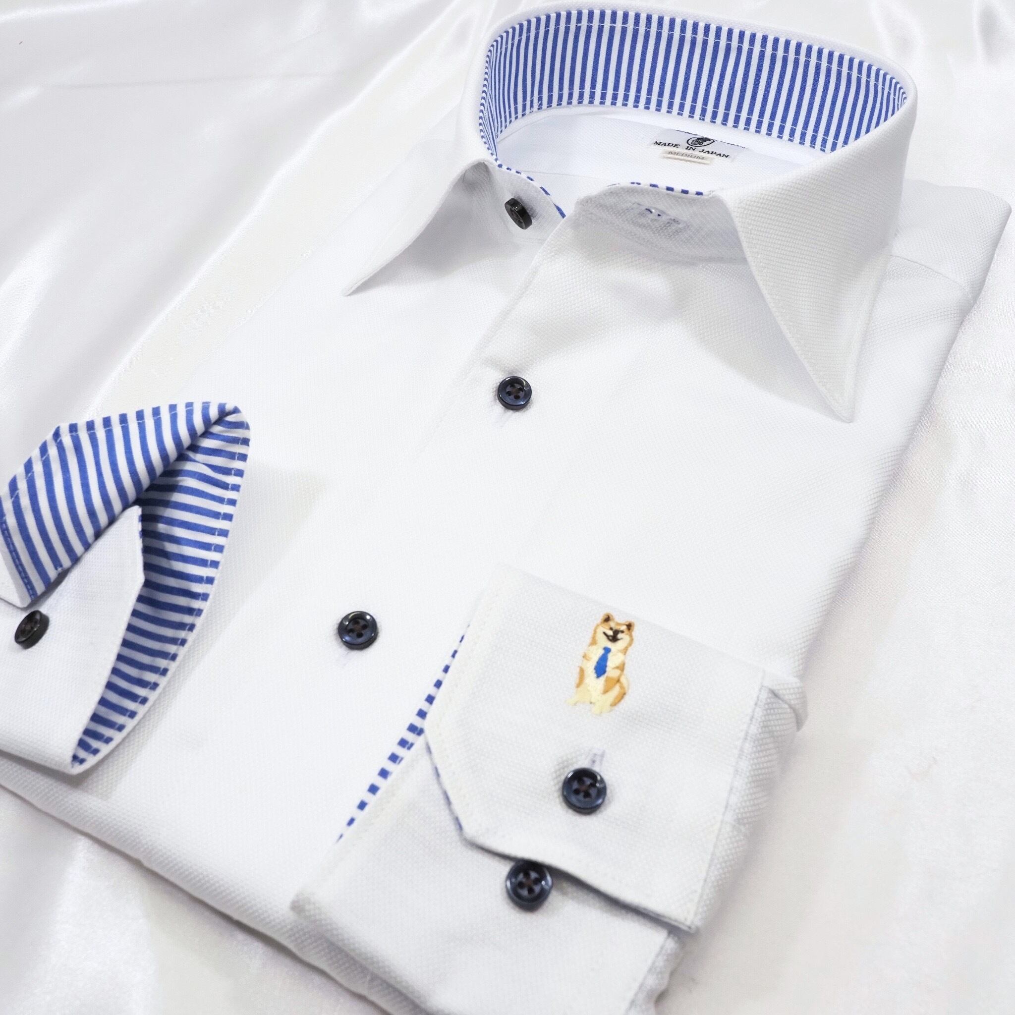 ネクタイを締めた柴犬の刺繍がチャーミングなアクセントに。