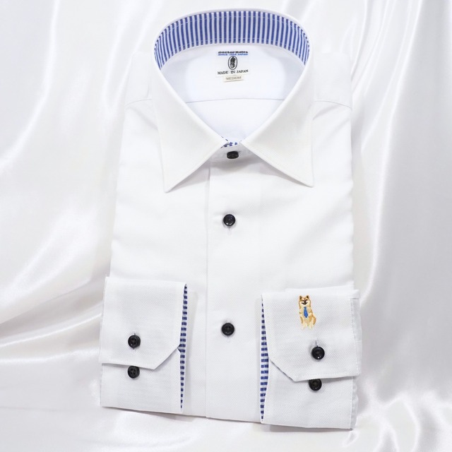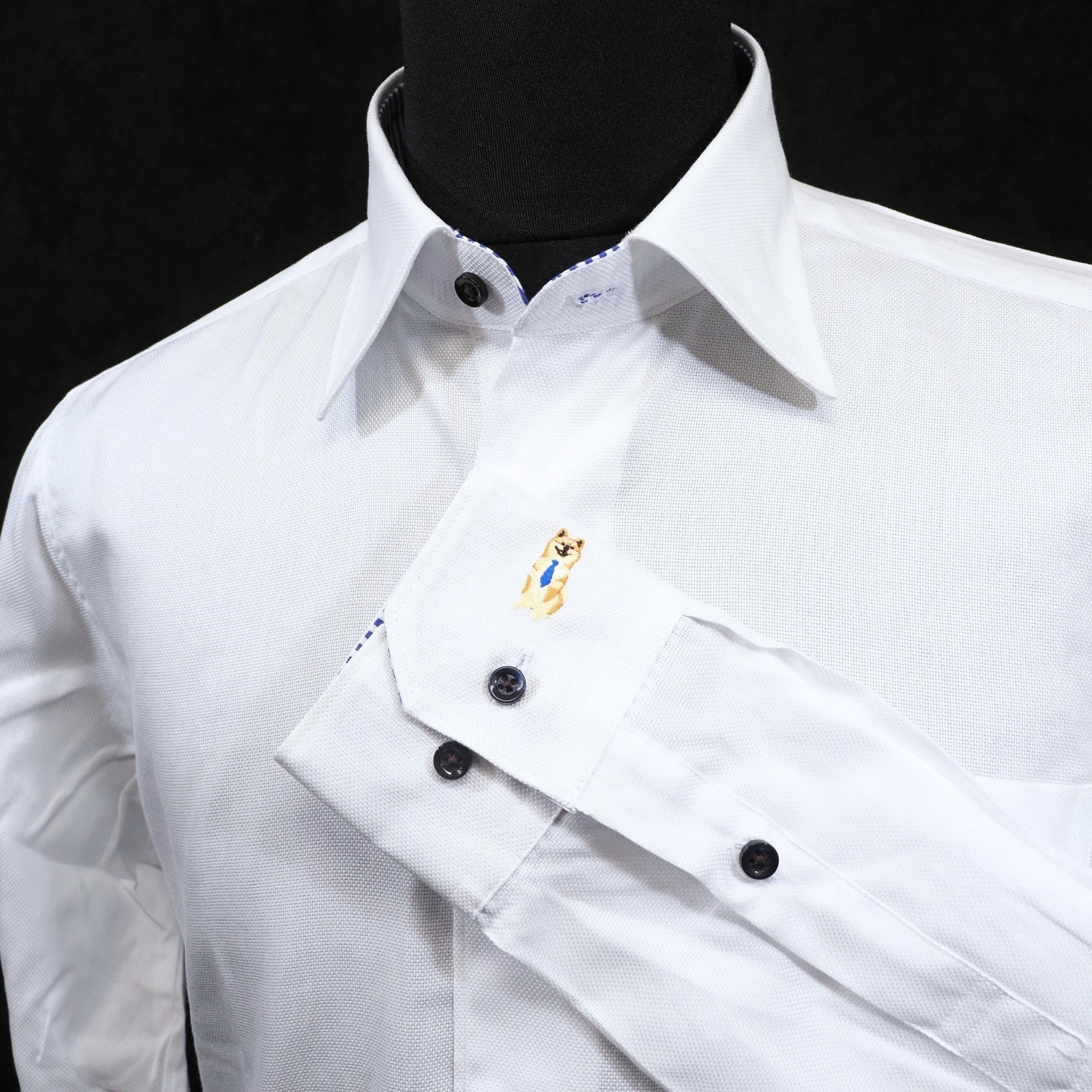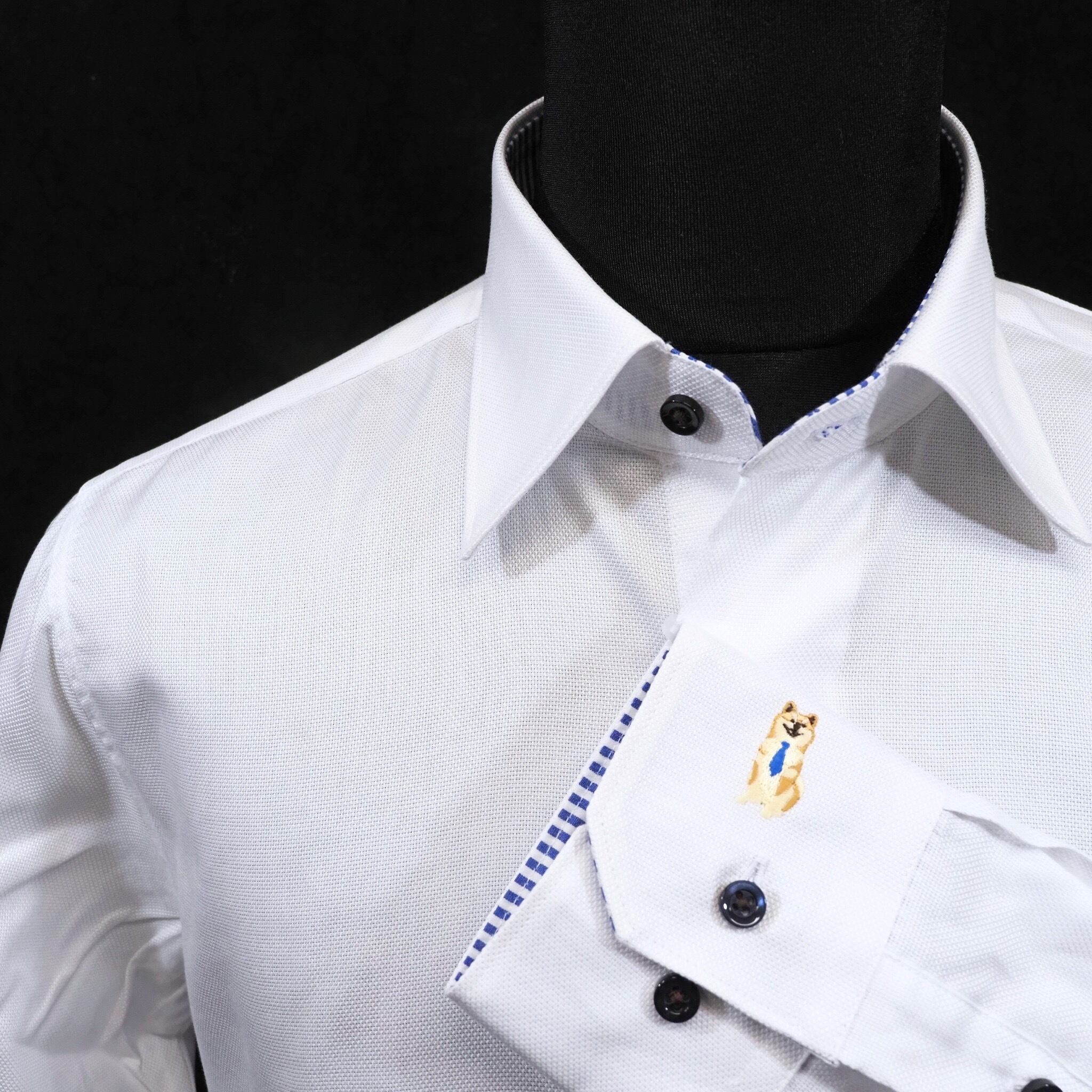 ネクタイを締めた柴犬の刺繍がチャーミングなアクセントに。