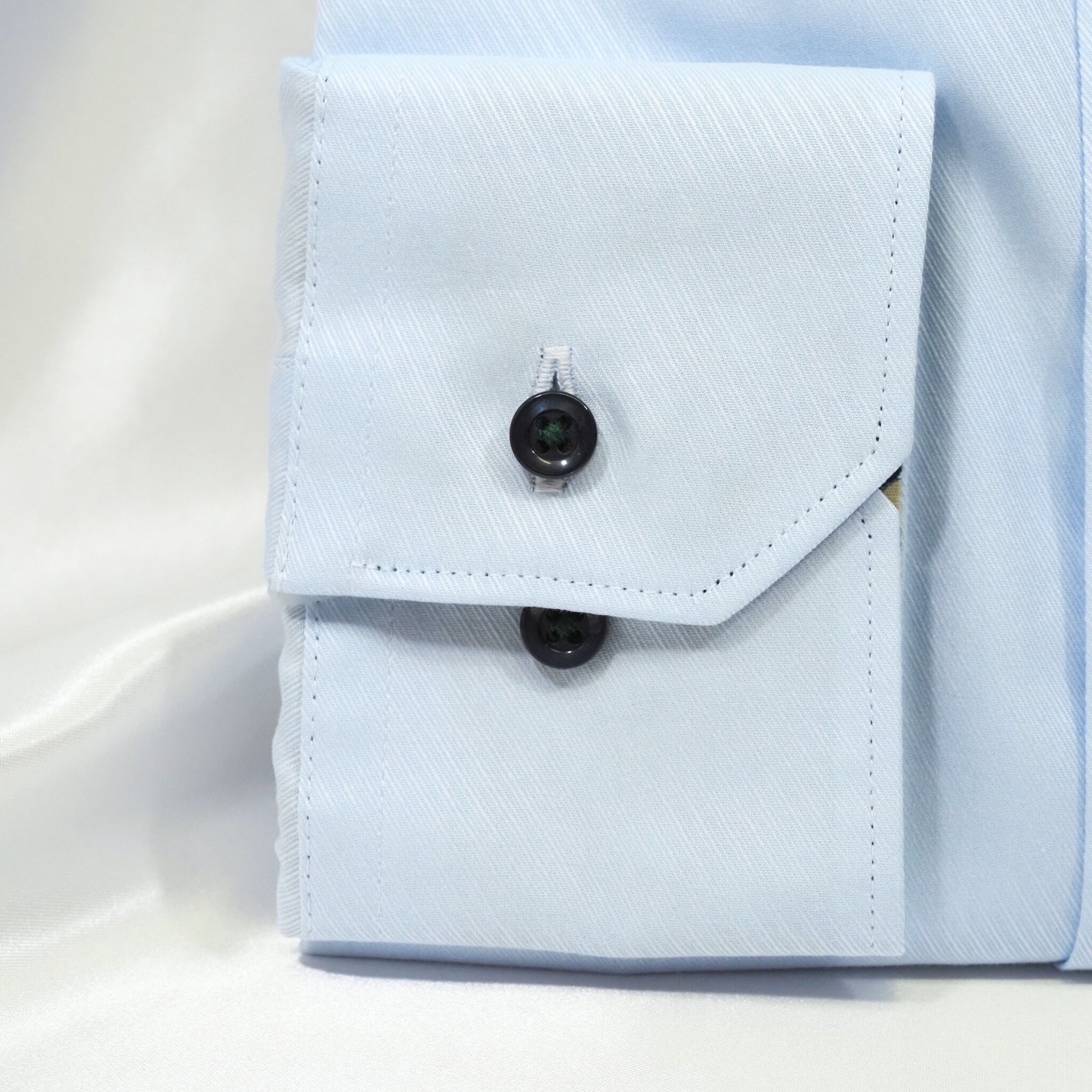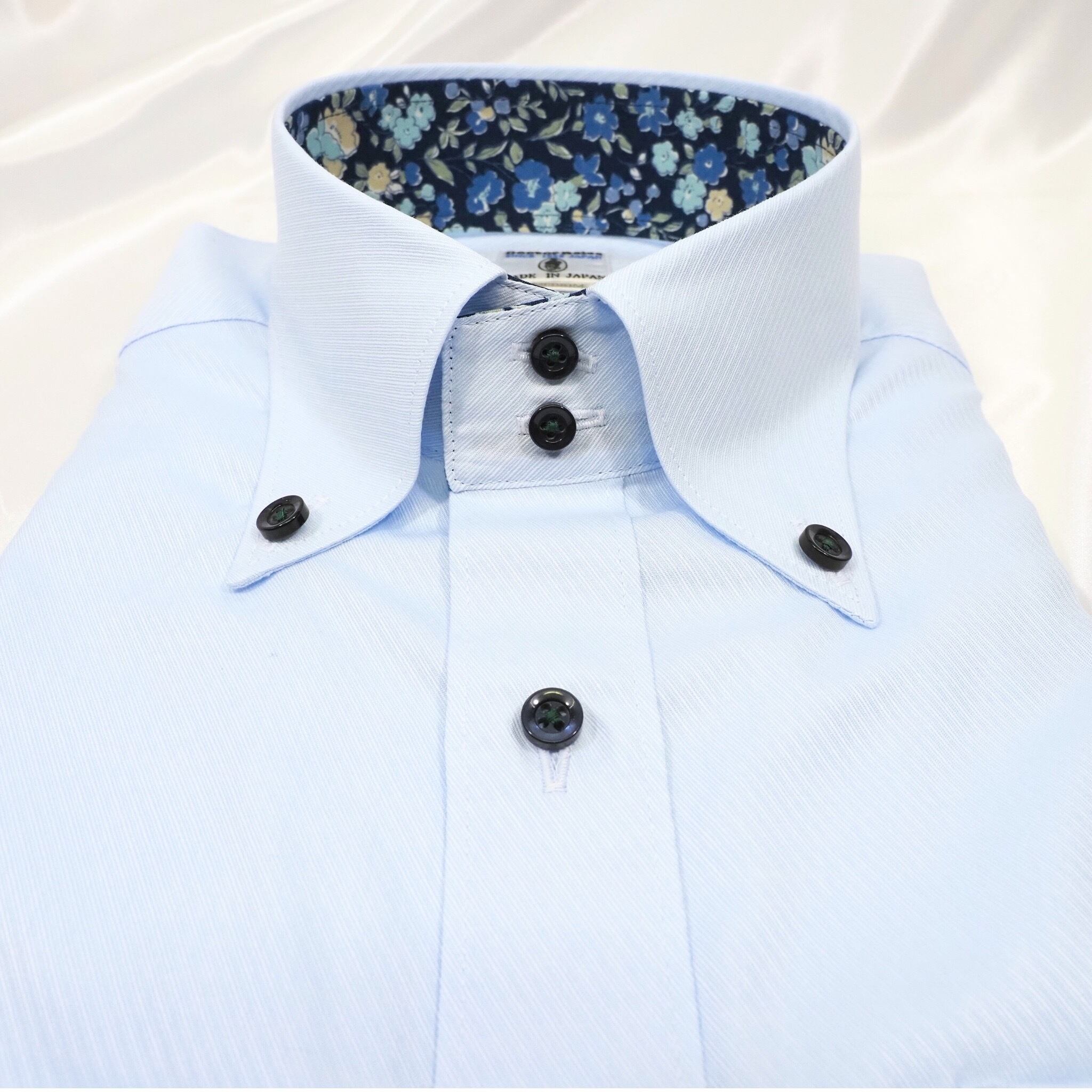 爽やかなサックスブルーに、ブルー×ベージュの小花柄裏地がよく映えます。
