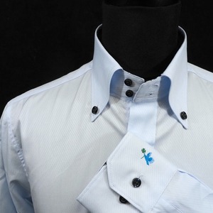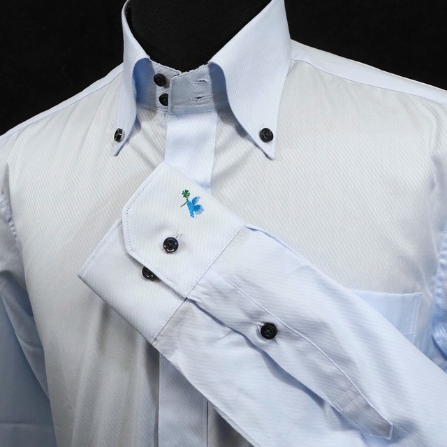 袖のブルーバード刺繍が、さりげない幸運のお守りに。