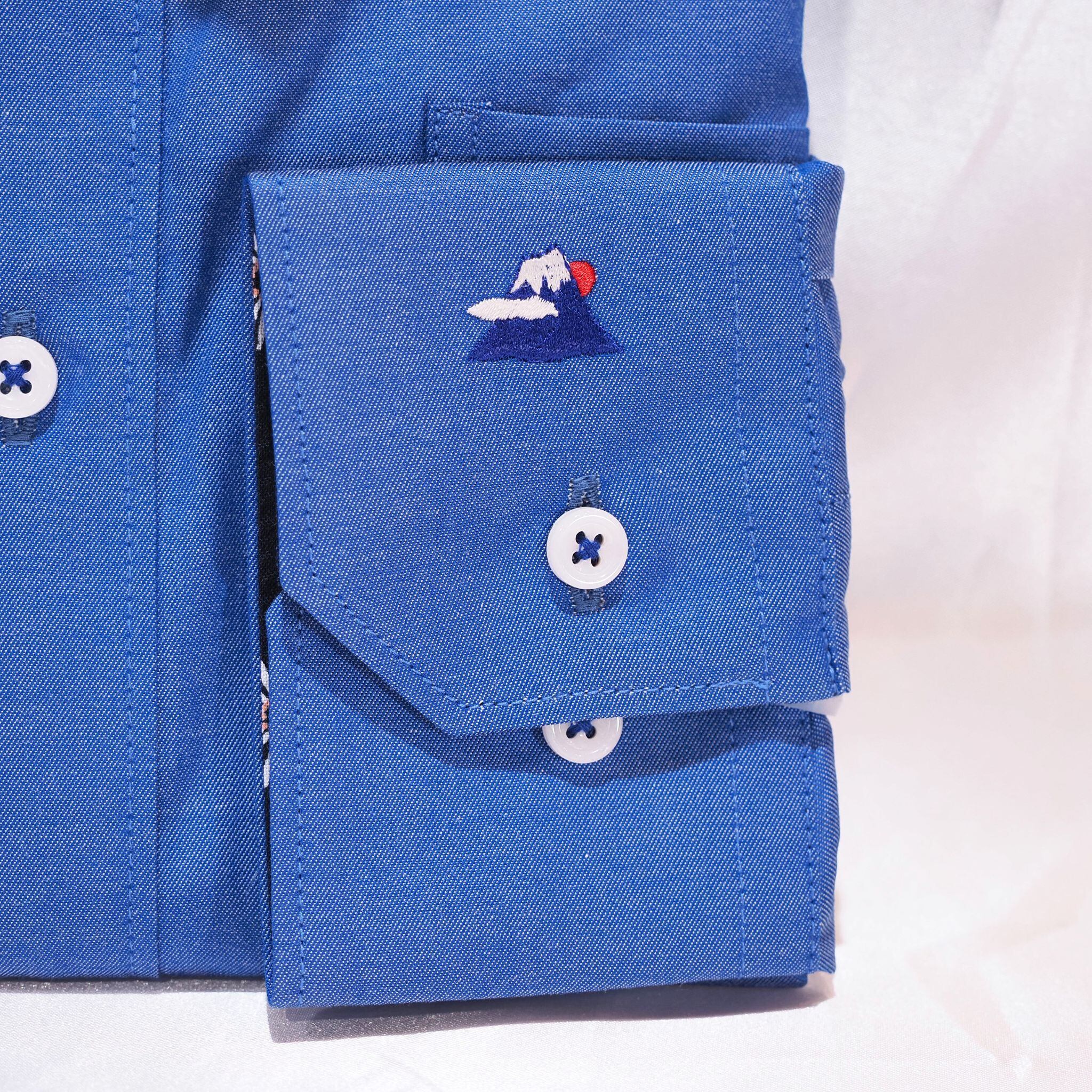 鮮やかなブルーに、日本らしい富士山刺繍をあしらいました。