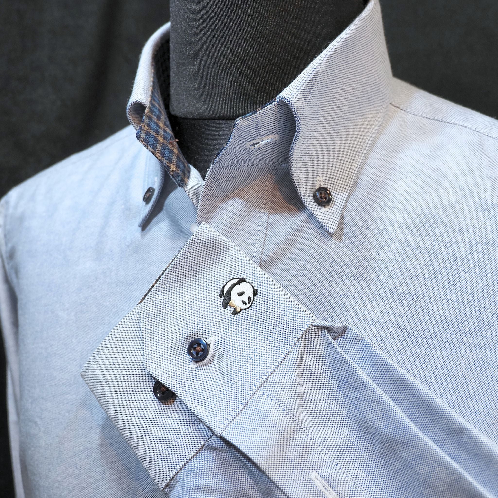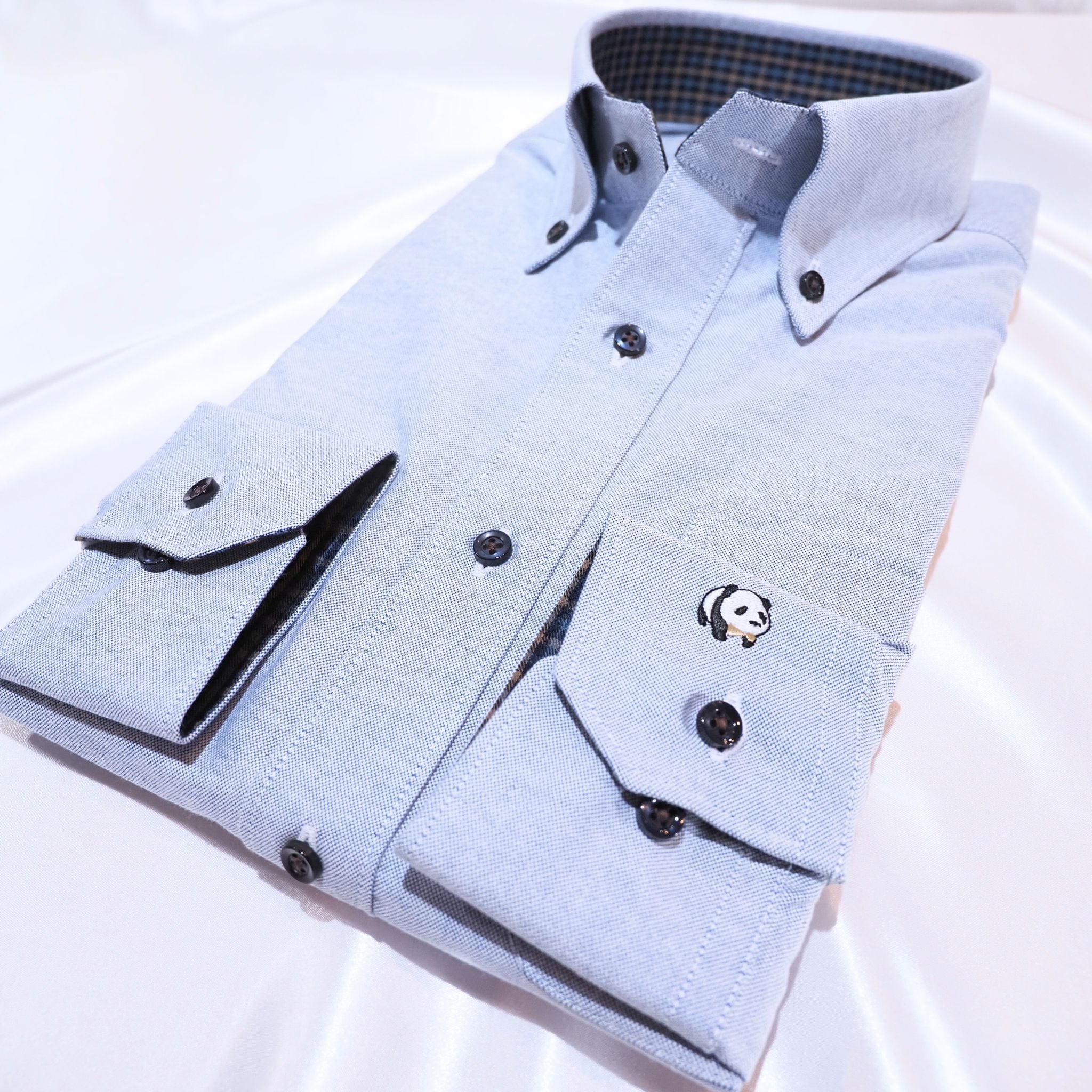 爽やかなサックスブルーに、愛らしいパンダ刺繍をプラス。