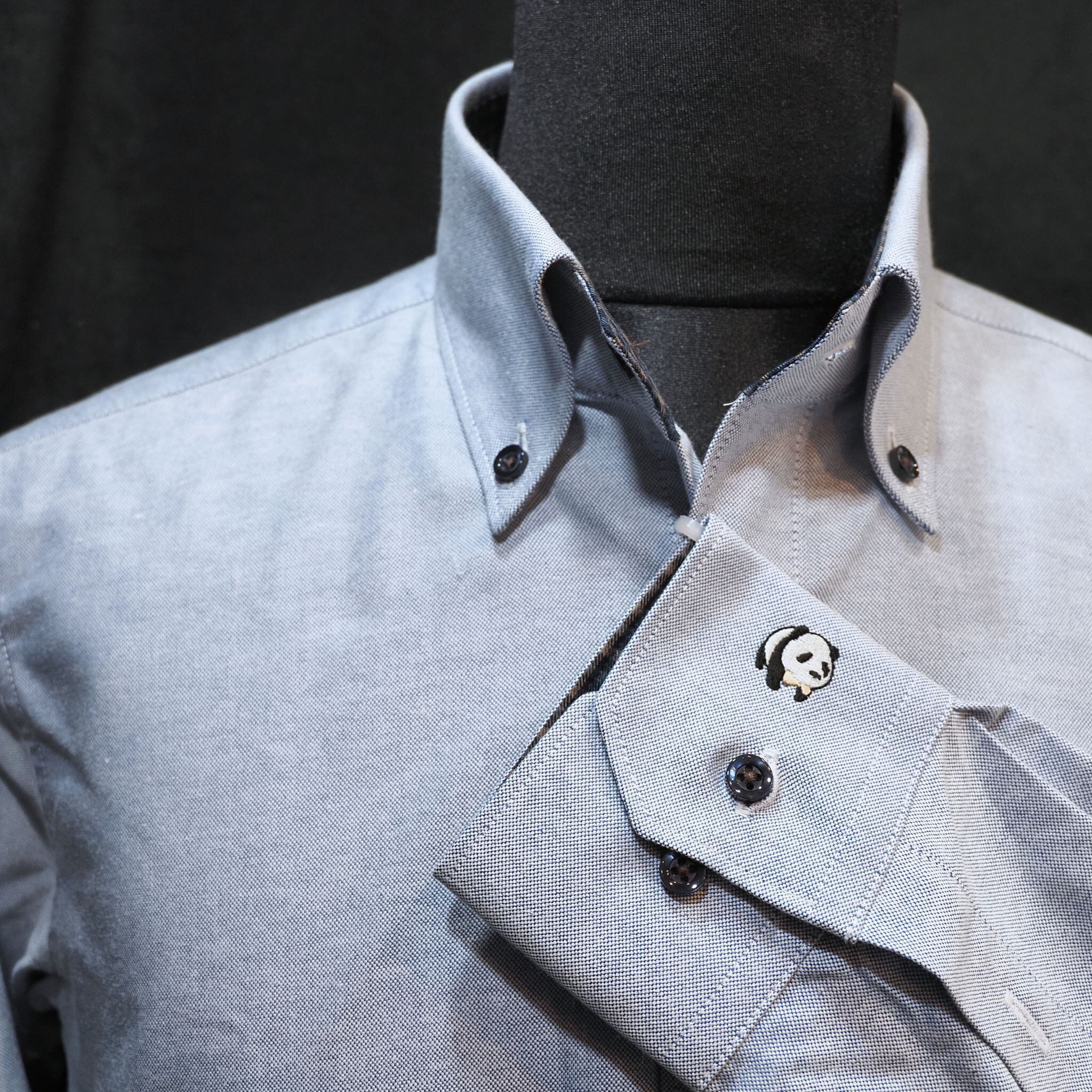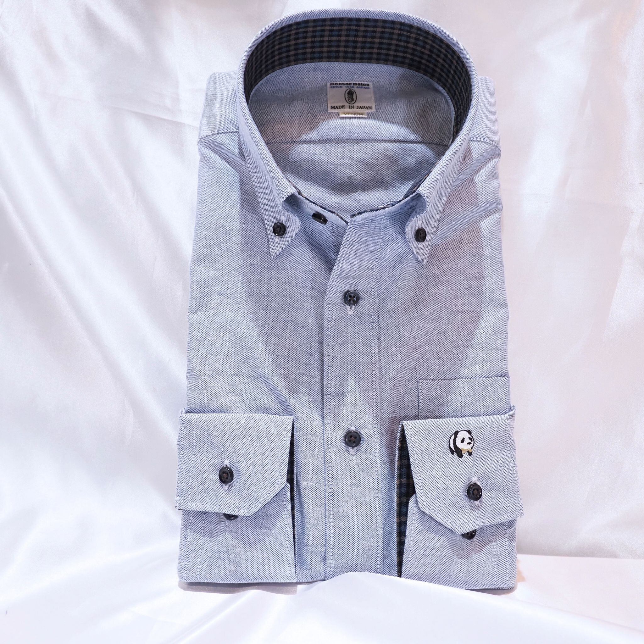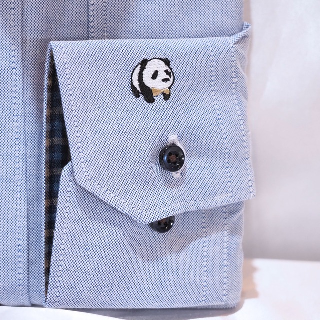 爽やかなサックスブルーに、愛らしいパンダ刺繍をプラス。