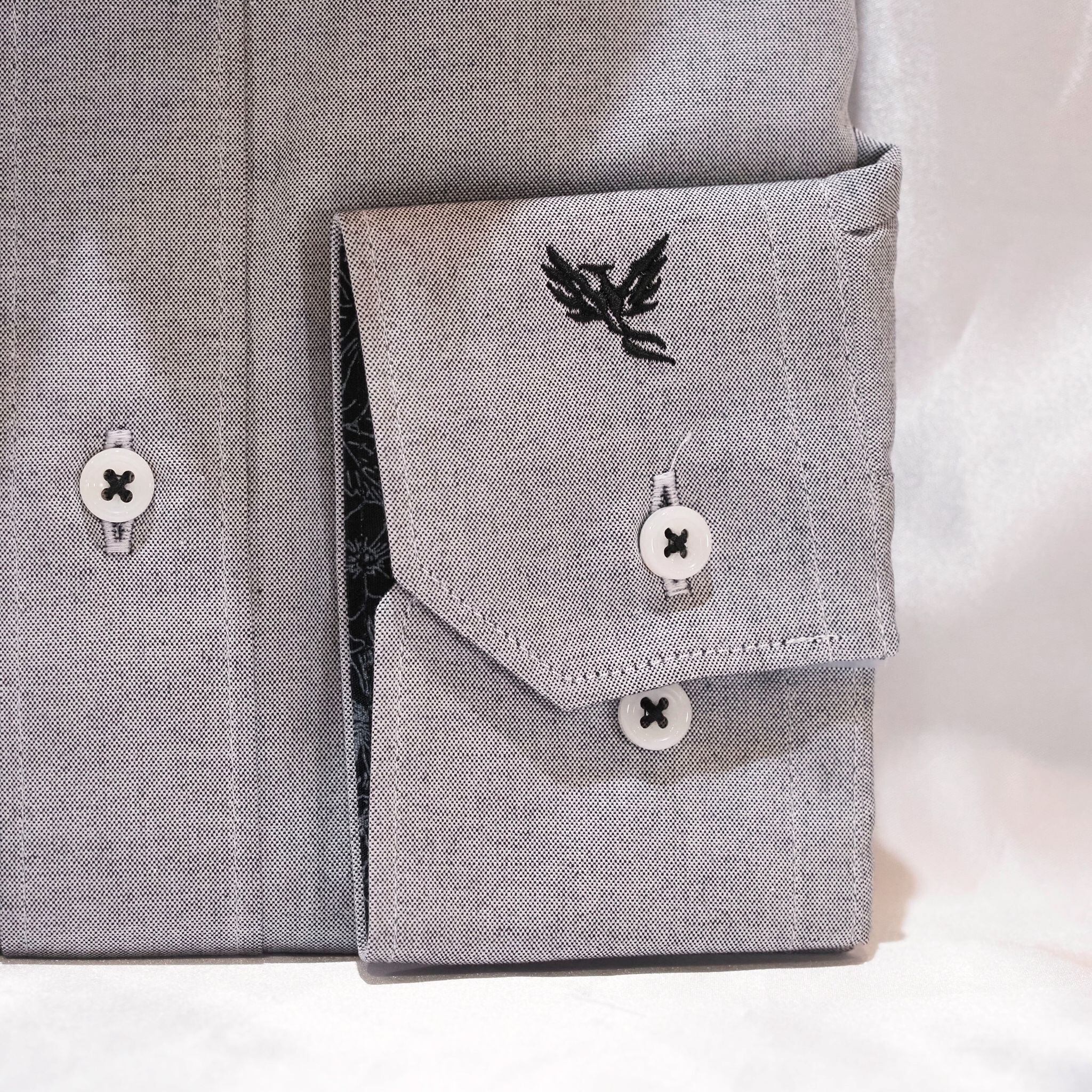 落ち着いたグレーカラーに、フェニックス刺繍が映える一枚。