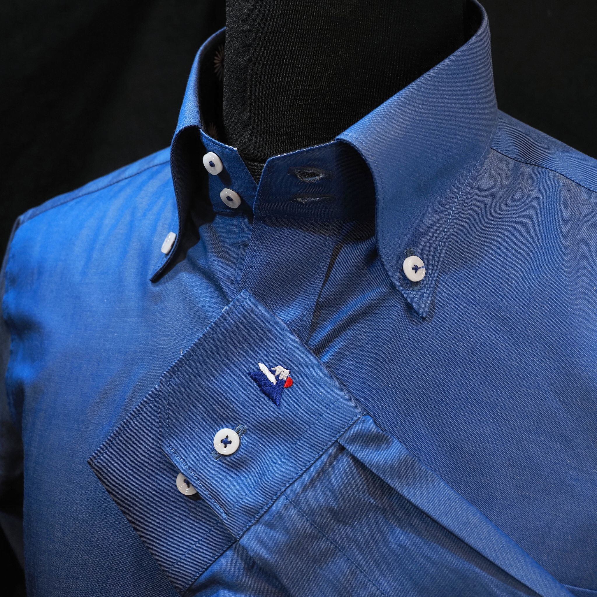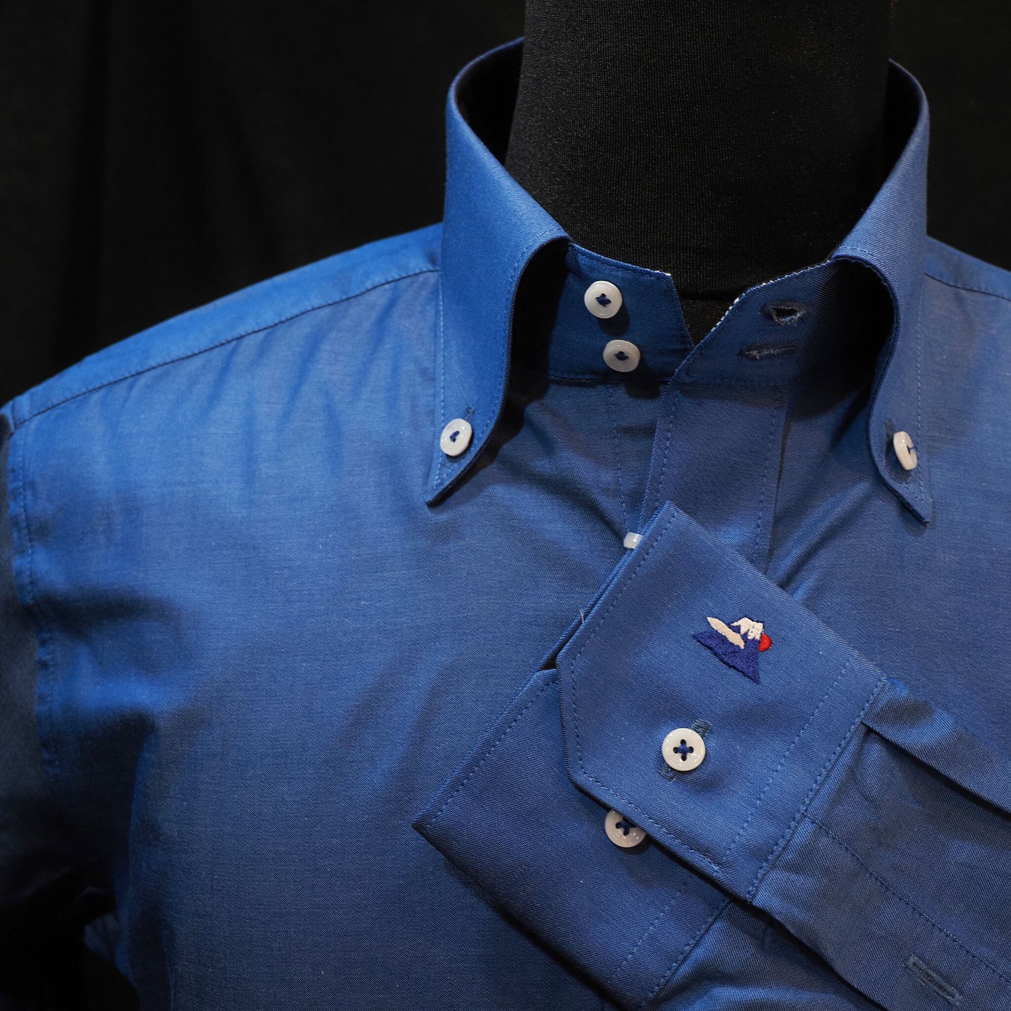 鮮やかなブルーに、日本らしい富士山刺繍をあしらいました。