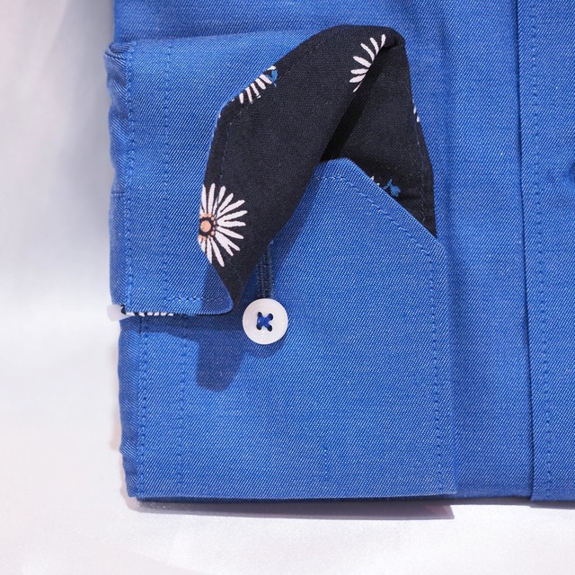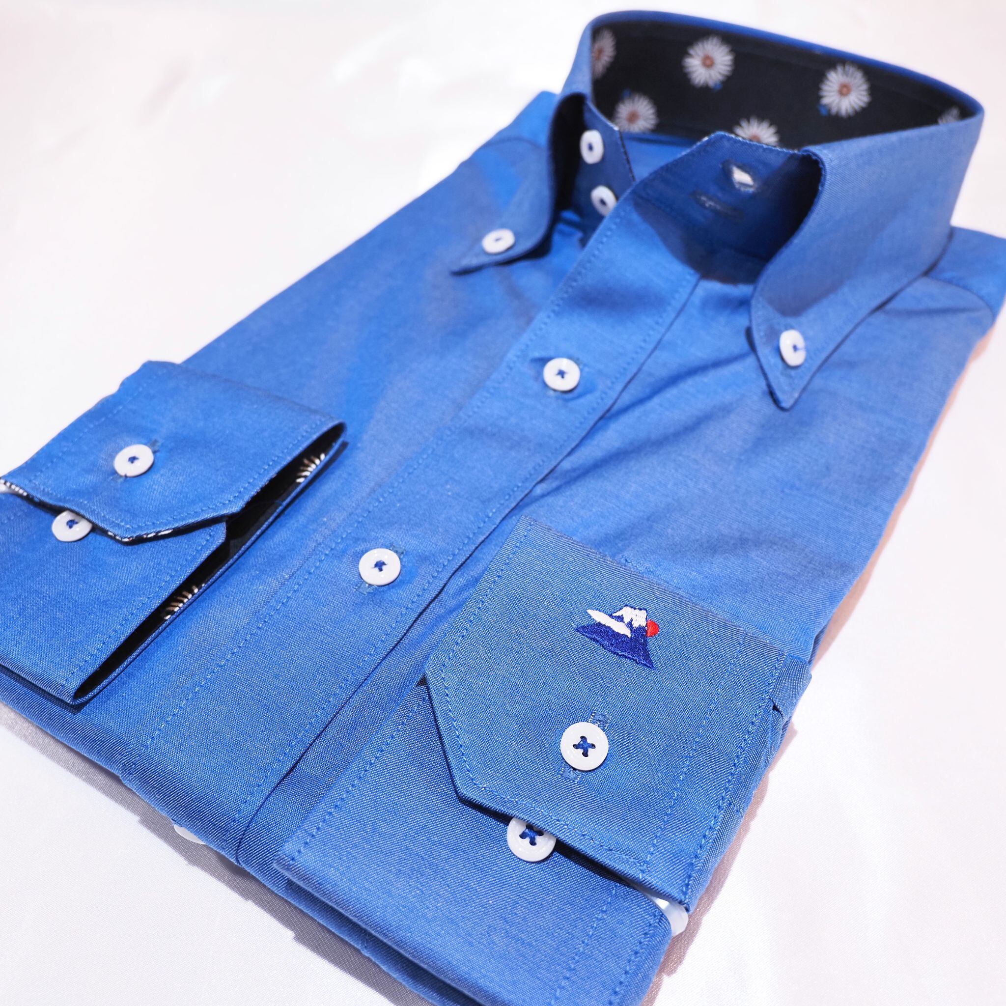 鮮やかなブルーに、日本らしい富士山刺繍をあしらいました。