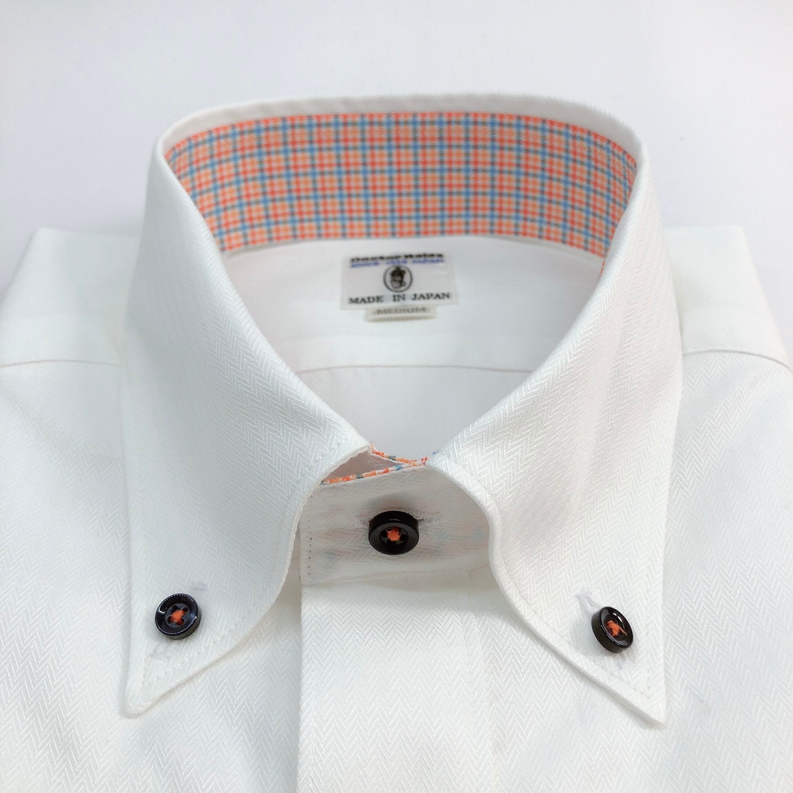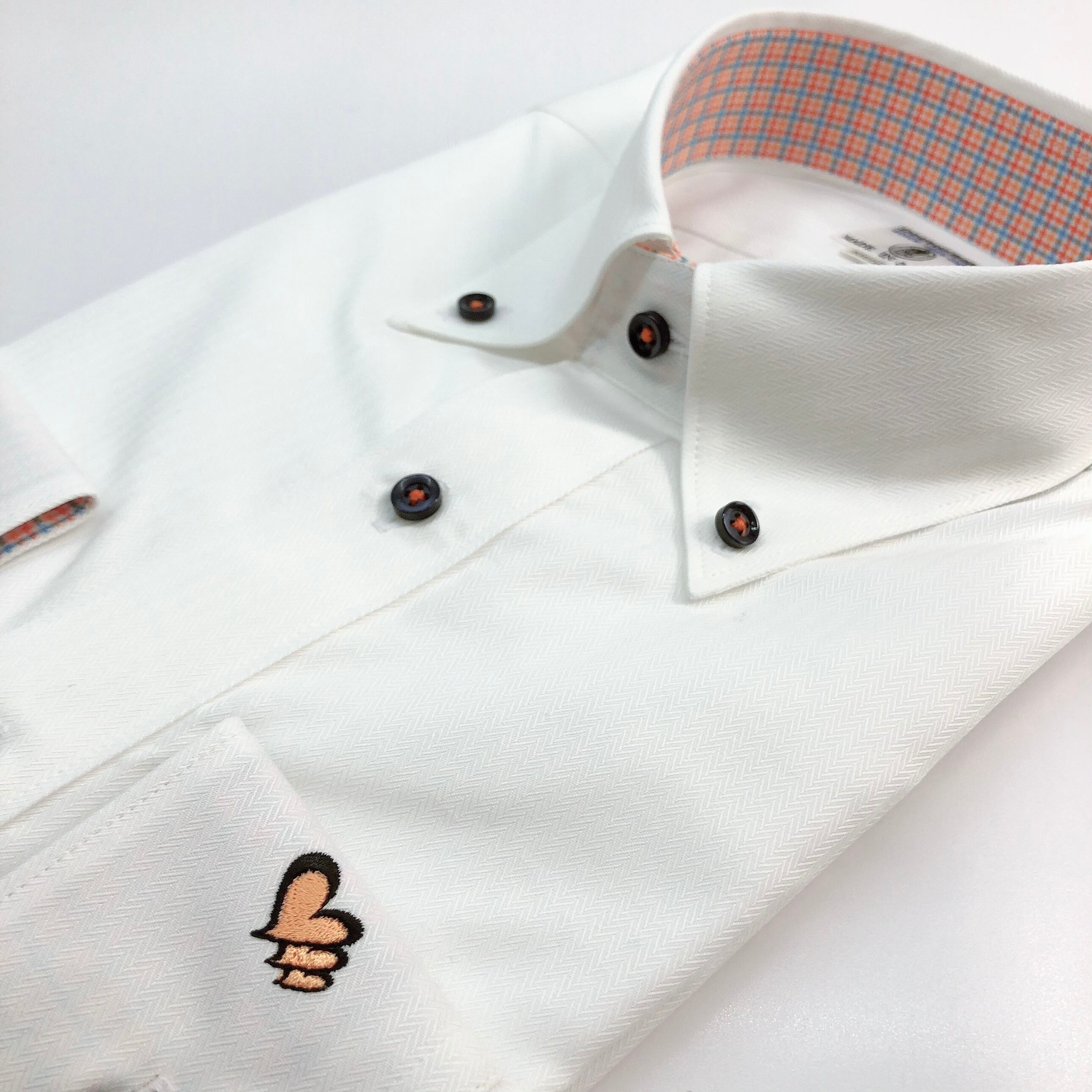 ノータイ時にチラッと見える衿裏は刺繍に合わせた鮮やかなチェック柄が春夏らしく、とても素敵なシャツです。