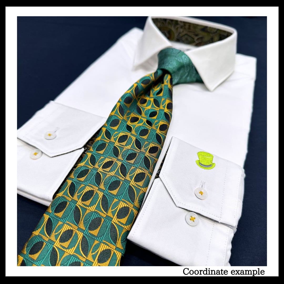 袖口にはライトグリーンの”シルクハット”
