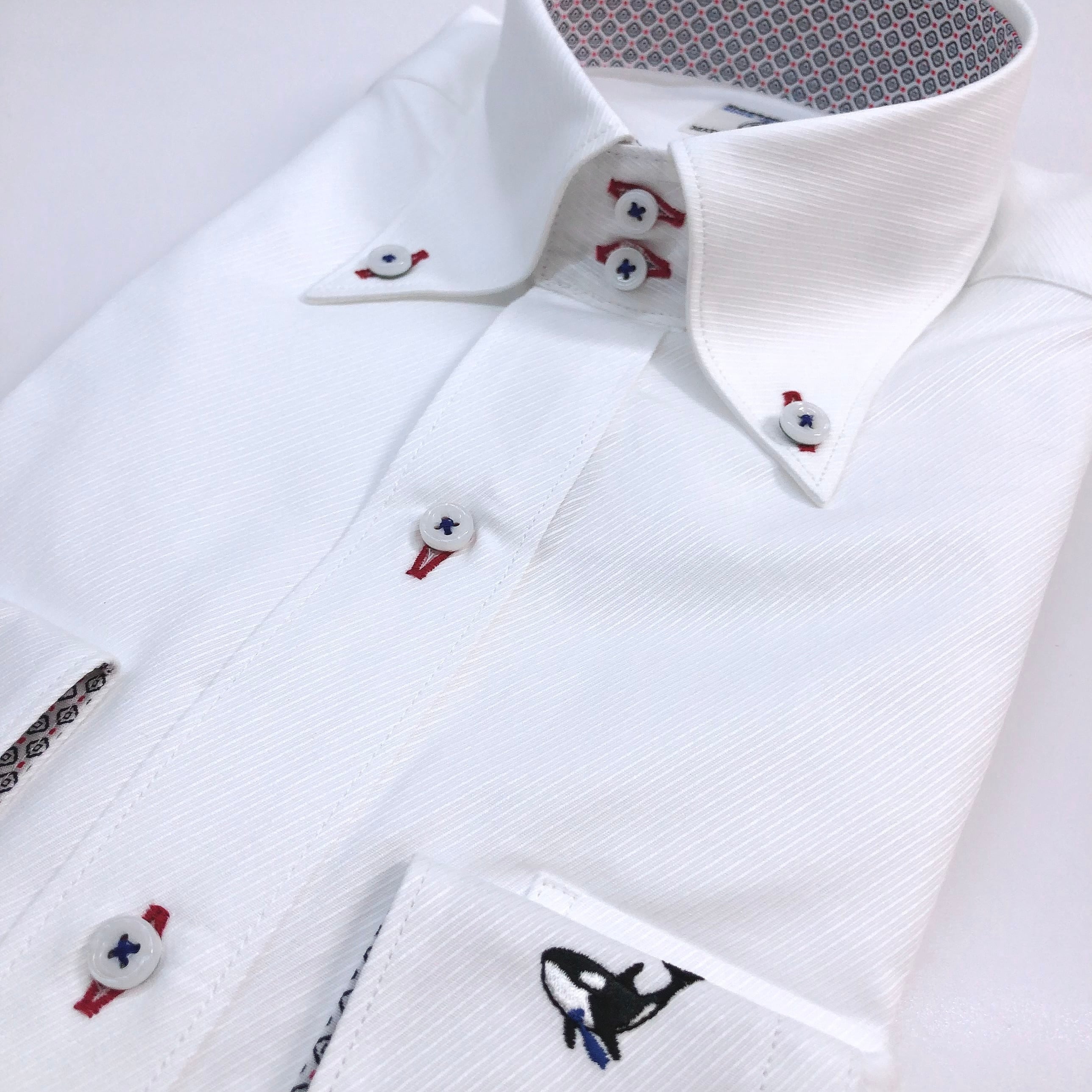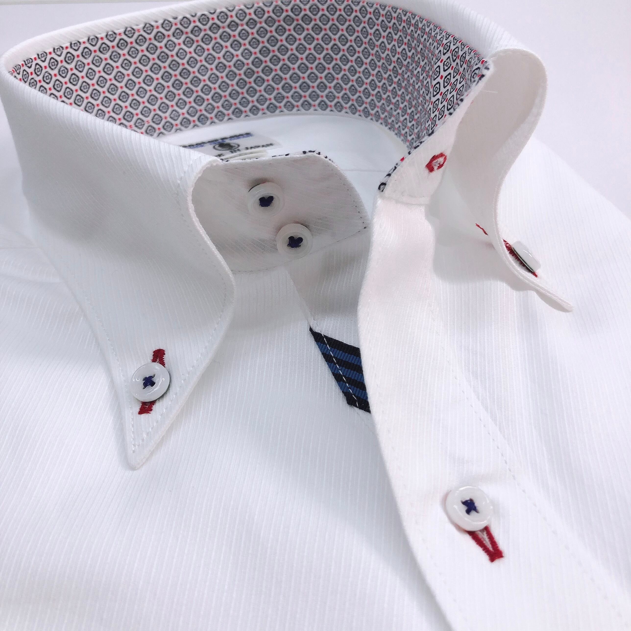白ボタンに留め糸などを赤・青にしたことで、人気のトリコロールの配色にしてみました。