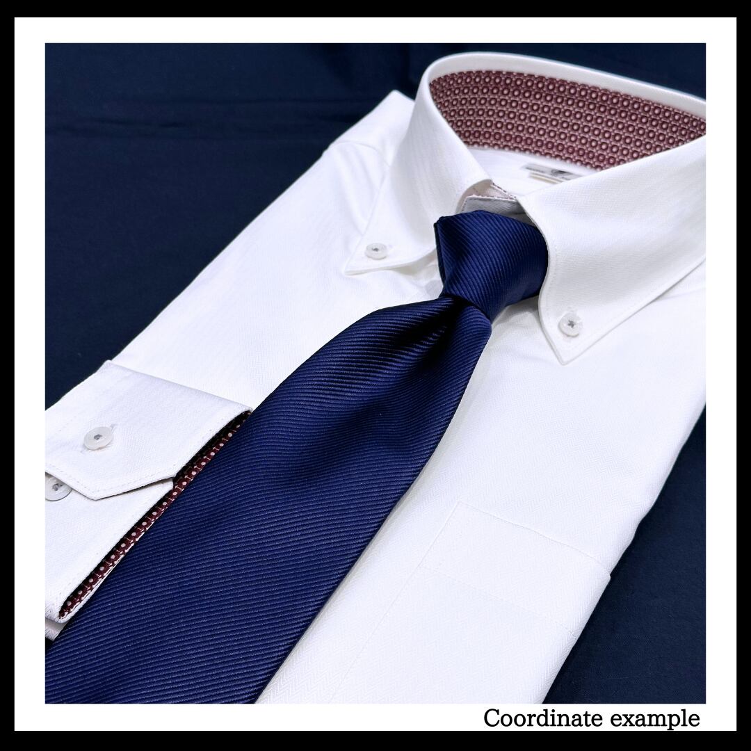 また白シャツに白ボタンの為、ネクタイを締めるシーンでも色を選ばず様々なデザインのネクタイをお楽しみいただけます♪