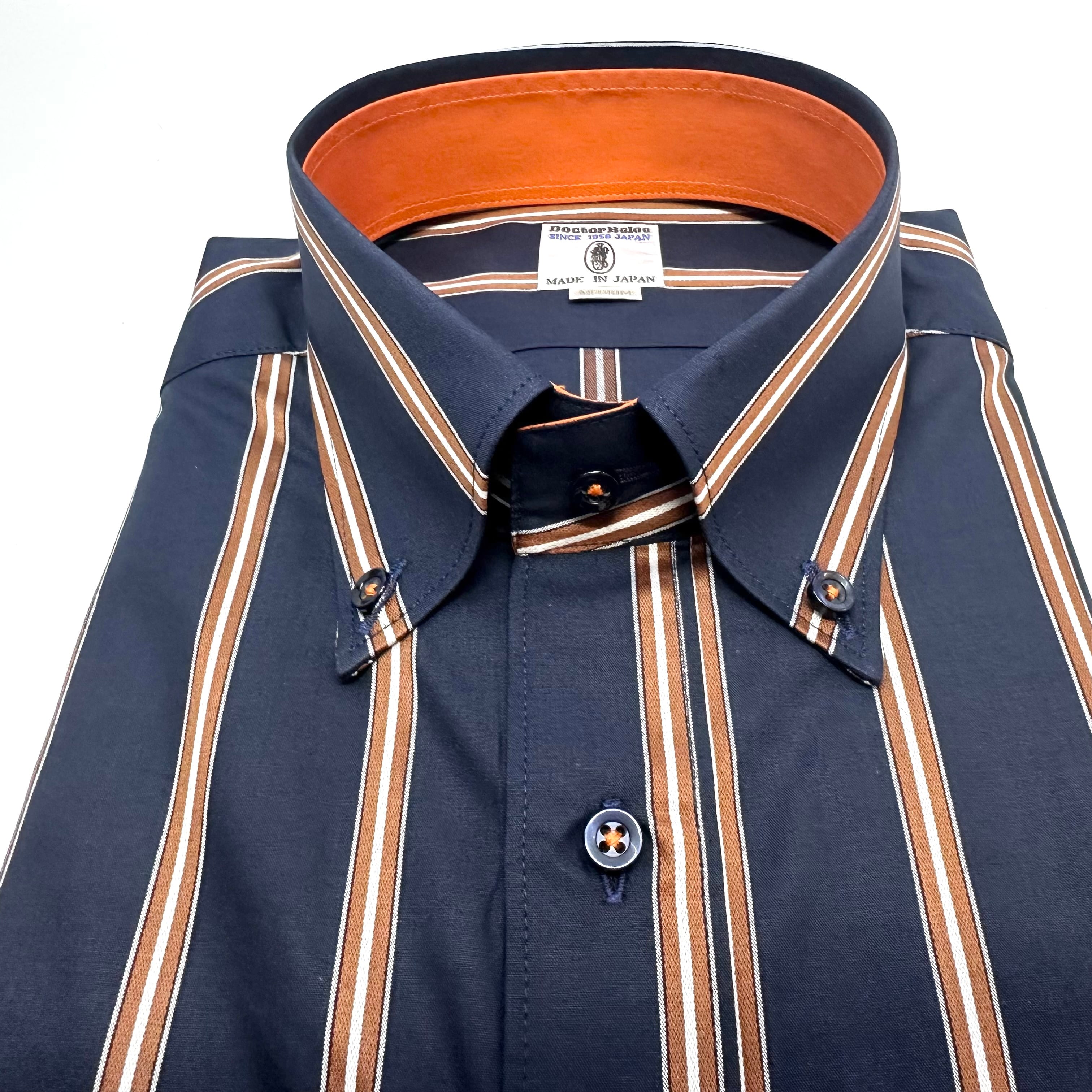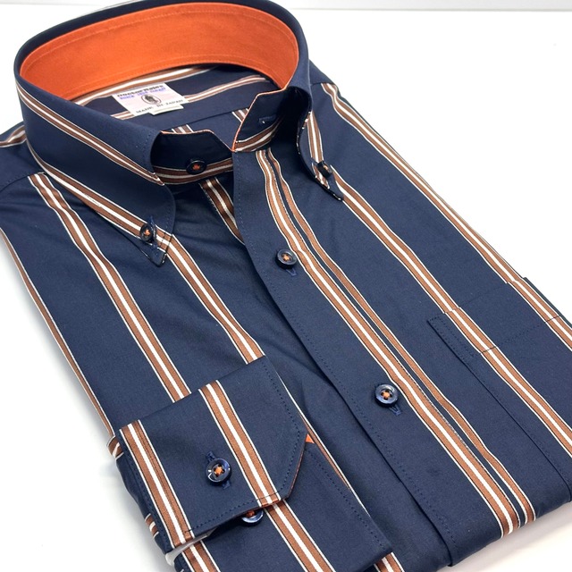 ネイビー地にブラウンストライプと珍しい柄の生地です!