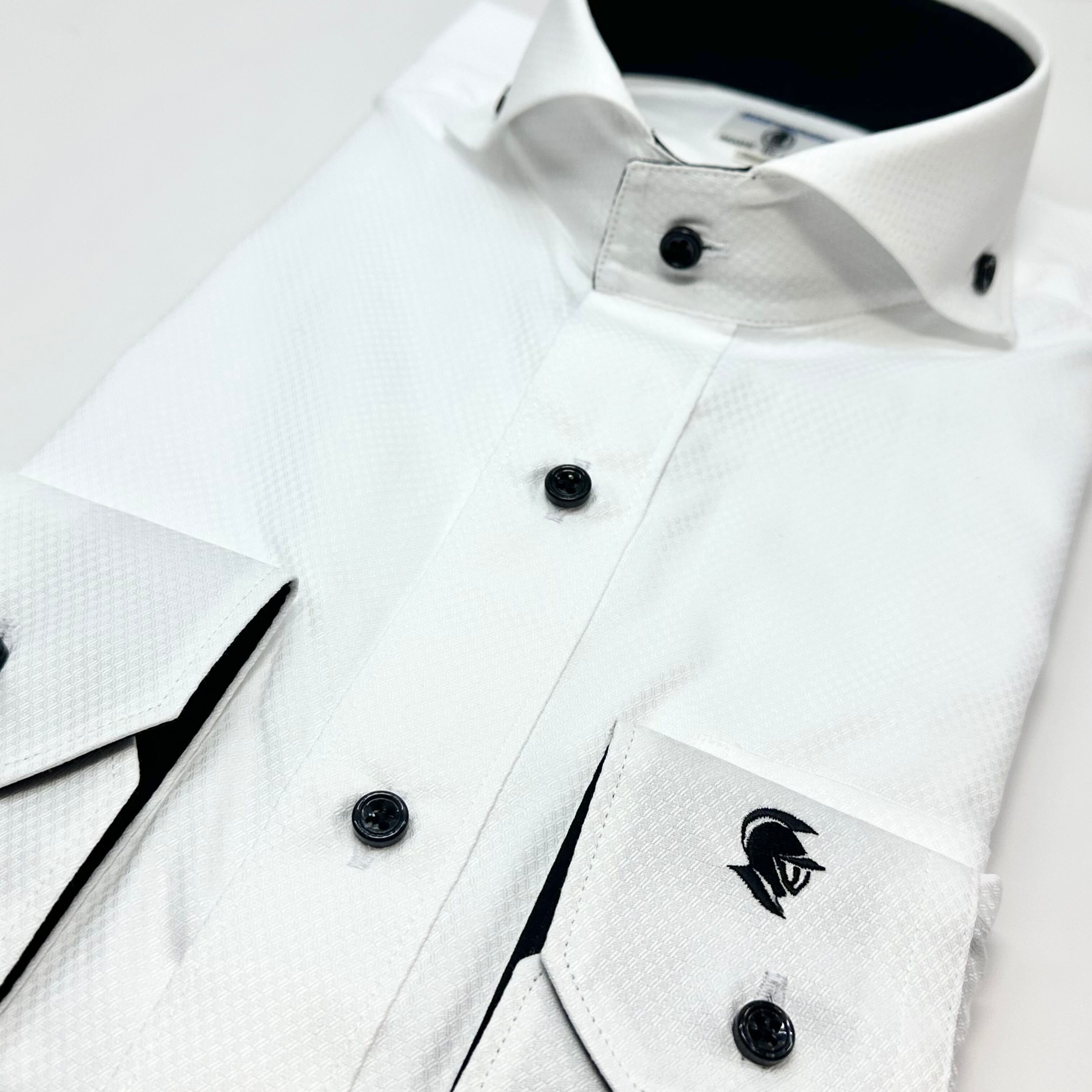 衿が開いた見た目はカッタウェイとほとんど変わりませんが、両サイドに飾りボタンがあるイメージです。