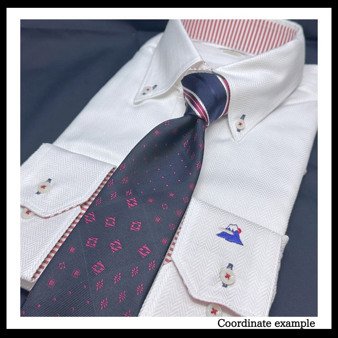 デザインは富士山色合わせで、ボタンホール紺&留め糸を赤にしており、